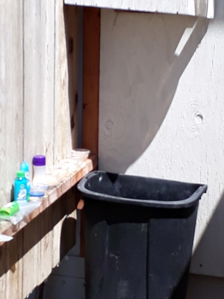 Nach dem Essen sind wir wieder richtig gut drauf. Zurück müssen wir gehen, aber es ist nicht weit zum Campground. Hier hat es viele Hiker und ich bin nicht die Einzige mit Blasen an den Füssen oder anderen Blessuren. Einige geben auf oder nehmen sich eine Auszeit vom Trail. Wir wollen jetzt warm duschen, dafür muss man etwas bezahlen und bekommt ein Badetuch. Die Duschen sind einfache Bretterabteile hinter dem Haus. Wasser in die Eimer und damit duschen, so geht das hier. In der Dusche sitzt auf dem Ablauf eine fette Kröte, die unter das Haus verschwindet. Auf der Mauer sitzt etwas wie ein Salamander, nur grösser, der bleibt erst noch. Andy ruft, es komme ein Hase. Auch der verschwindet unters Haus. Solange keine Schlange kommt, ist mir das egal. Wir waschen unsere Kleider. Gleich nebenan kann man die Kleider aufhängen, die sind in einer Stunde sicher trocken.