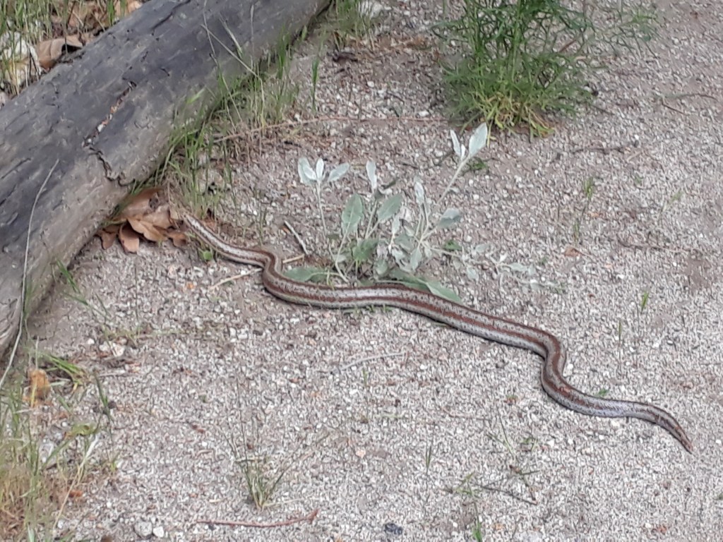 Der Weg ist viel durch den Wald, aber schlecht und ein ständiges Auf und Ab. Einmal verlieren wir den Weg, weil er abgerutscht ist, und müssen durchs Dickicht gehen, was uns gar nicht gefällt. Mit dem GPS finden wir den Weg wieder und da sehen wir auf dem Weg vor uns eine Schlange, die wir noch nicht kennen. Wir filmen und fotografieren sie, damit wir nachfragen können. Nicht viel weiter treffen wir noch auf eine schöne Klapperschlange. Ich finde, für heute reicht es jetzt mit Schlangen.