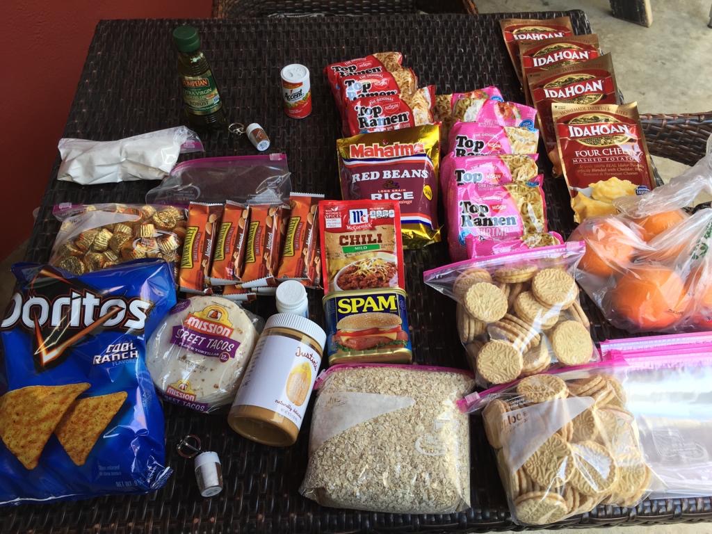 Danach gehen wir einkaufen für die ersten 77 Meilen (113 km). Wir rechnen drei bis vier Tage ein für diesen Streckenabschnitt. Im Einkaufszentrum gibt es alles, was wir brauchen (siehe Bild). Wir schauen eigentlich nur auf die Kalorien, natürlich auch aufs Gewicht. Das Essen wiegt 7,5 kg, geteilt durch 4 Tage sind 1,8 kg, also pro Person 900 g