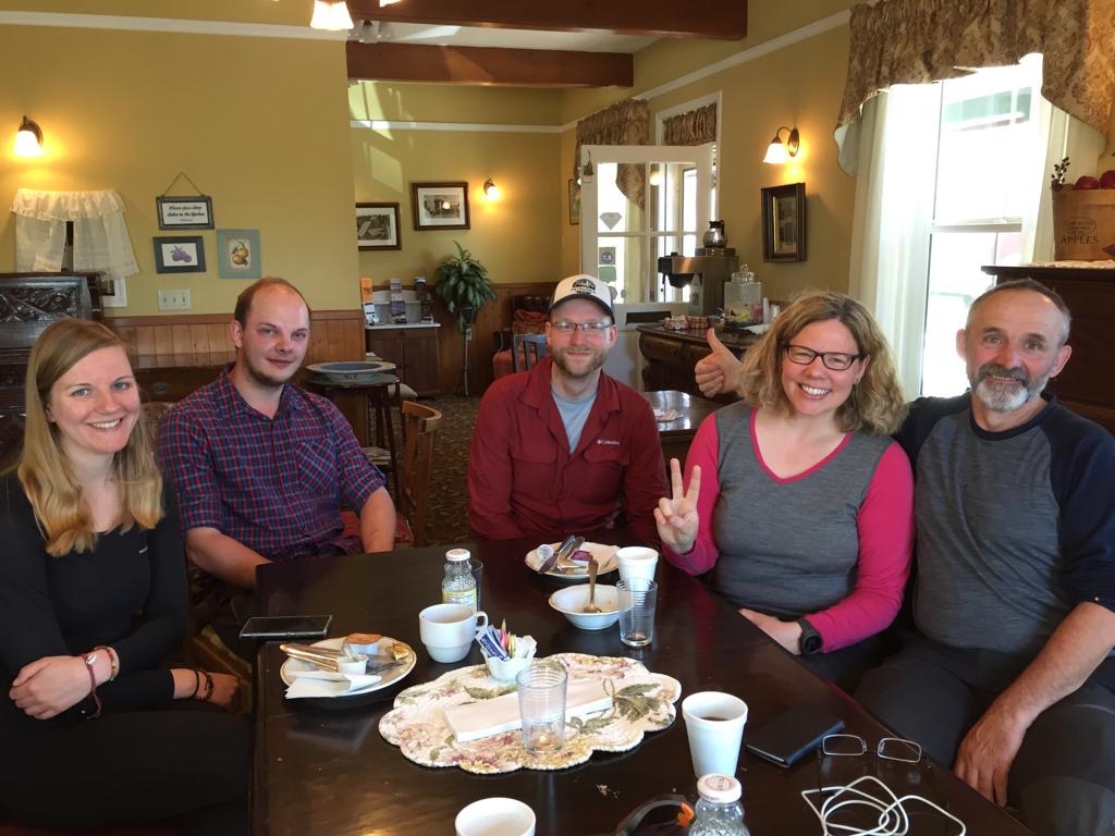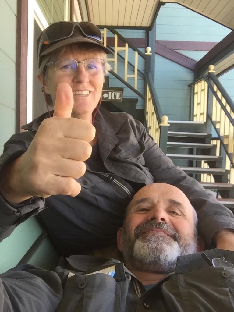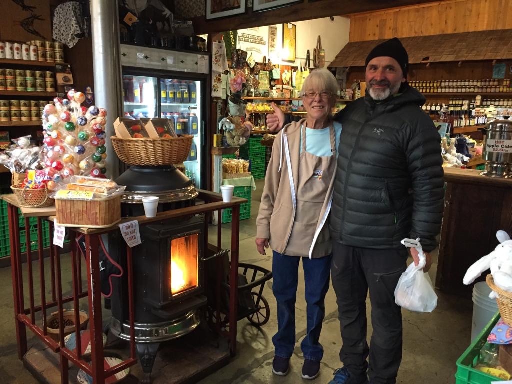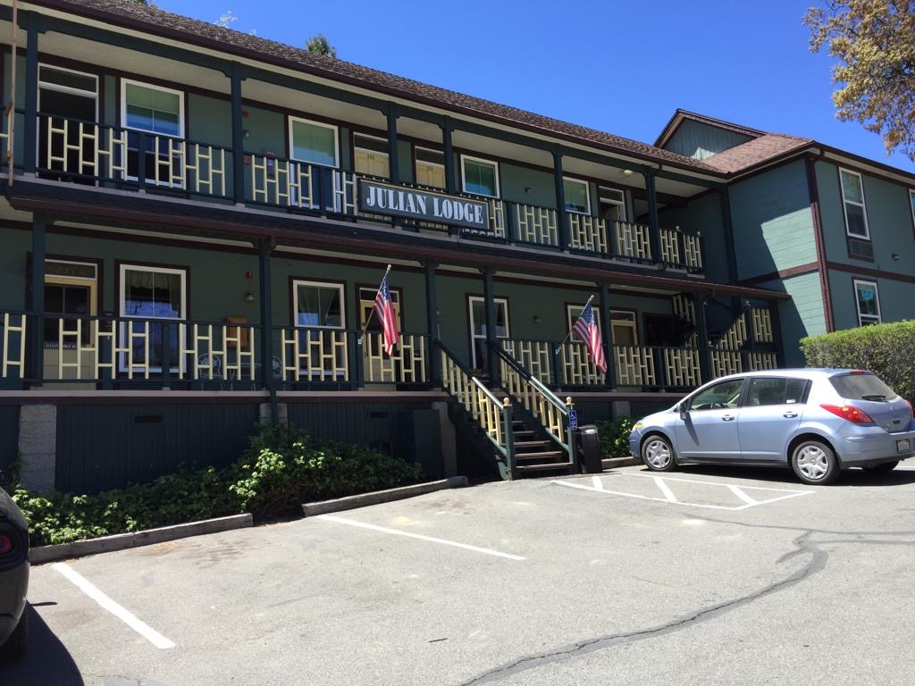 Also frühstücken wir sehr gemütlich und reden lange mit Marlen, Mareike, Jannis und Marcel, alle aus Deutschland. Dann gehen wir noch das Dörfchen erkunden, richtig nett hier, wie in einem Westenfilm. In einem Laden bekommen alle PCT-Hiker etwas zu trinken, Andy möchte ein Foto mit der Dame machen. In einem anderen Geschäft bekommen alle Hiker gratis einen Mom’s Applepie mit Glacé, dort gehen wir natürlich auch vorbei. Danach hängen wir noch ein wenig im Hostel (Julian Lodge) auf der Veranda ab.