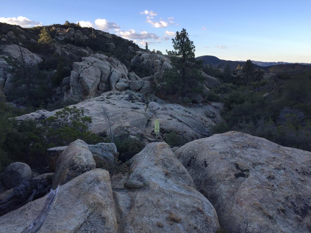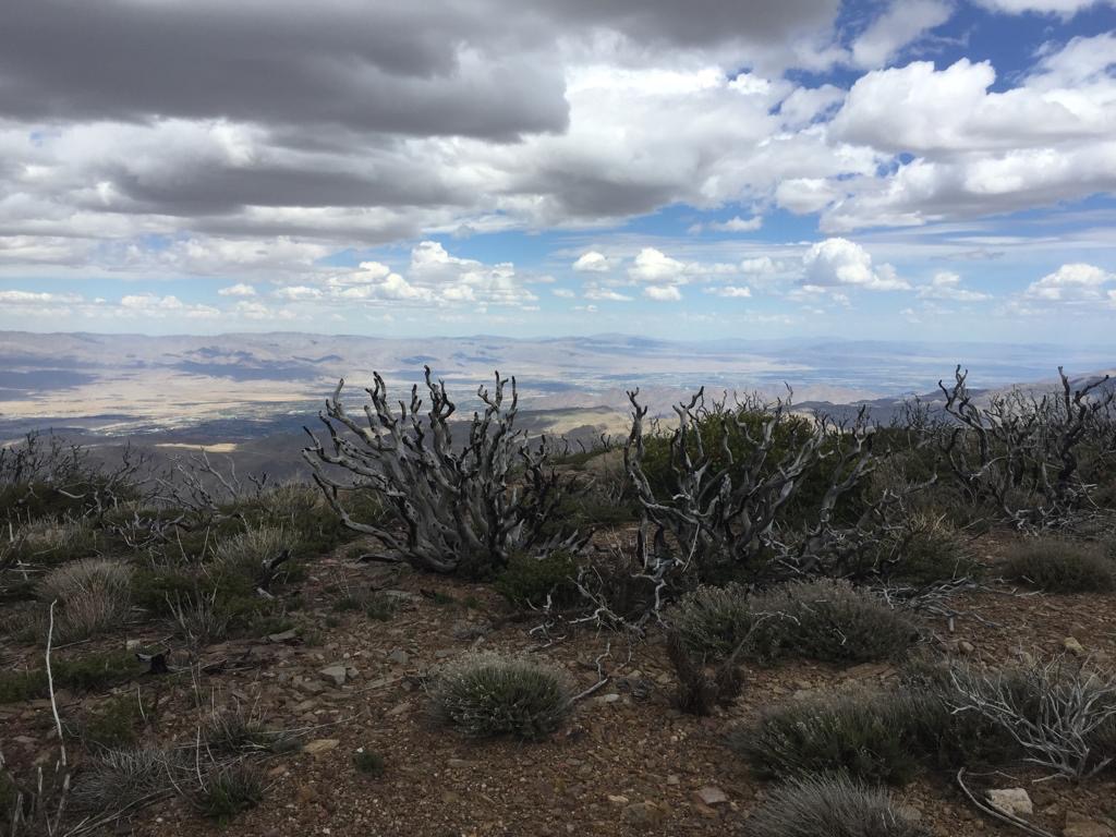 Nach der Pause müssen wir weiter den Hang hinauf, oben sind wir ziemlich geschafft, legen uns erst mal ein wenig in den Schatten und erholen uns. Den ganzen Nachmittag laufen wir auf der Bergkuppe, die Sicht ist unglaublich, wir sehen auf die Ebene mit Palm Springs hinunter. Wir wissen, dass es nun 20 Meilen lang wahrscheinlich kein Wasser hat. Andy geht Wasser holen, muss dafür etwa eine Stunde hin und zurück gehen, ich bleibe oben beim Gepäck. Wir nehmen 7 Liter mit, jeder trinkt noch was er kann.