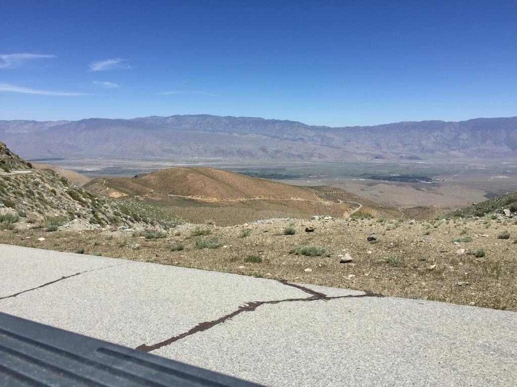 Wir stehen um 6 Uhr auf, gehen frühstücken und stellen uns dann für Autostopp an die Strasse. Aber es hält etwa zwei Stunden kein Auto, endlich nimmt uns ein Mann in einem uralten Saab mit bis Big Pine.