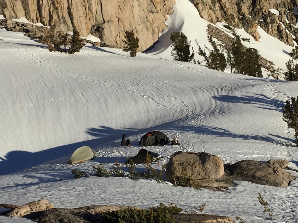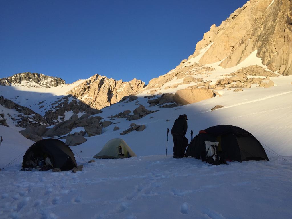Es wird 19:30 Uhr bis wir, etwa eine Meile unterhalb dem Glen Pass, die Zelte im Schnee aufstellen.
