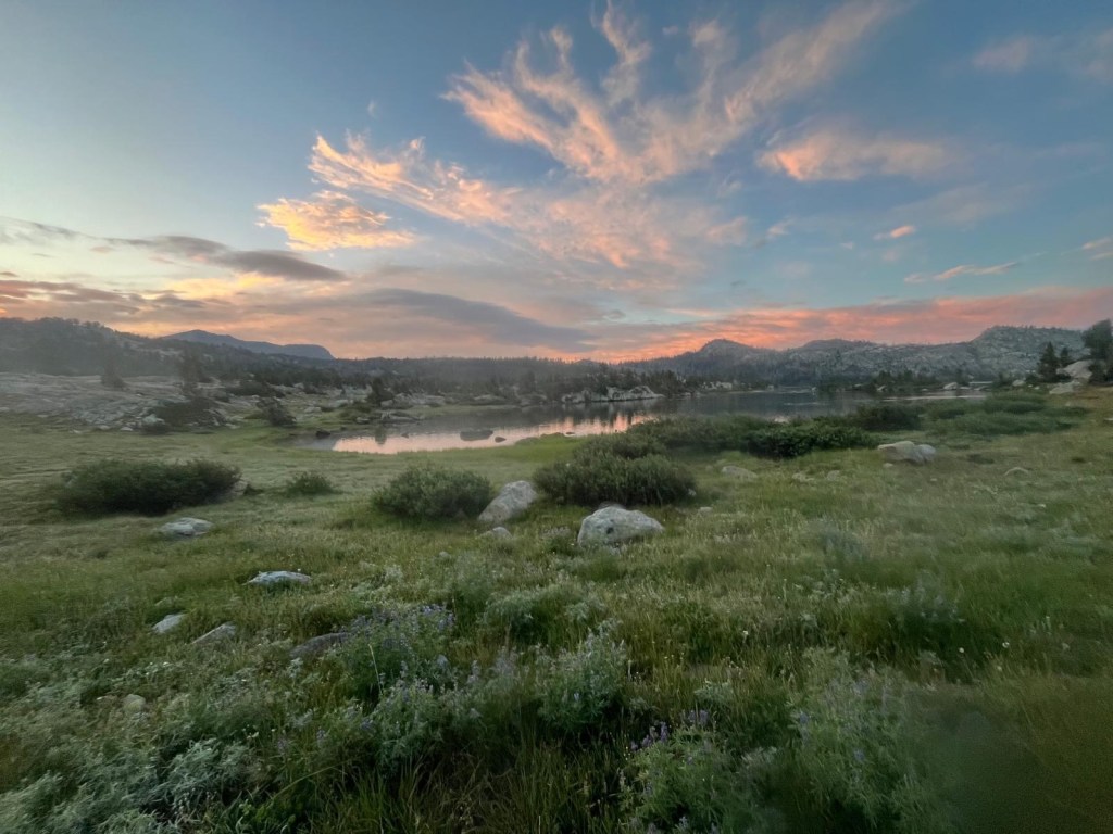 Wir gehen noch bis zu einem kleinen See und dort machen wir Feierabend. Wir verstauen unser Essen in einem Bärenschrank. Heute wollen wir nichts mehr riskieren. Das war genug Aufregung für einen Tag. Als wir die Schafe gesehen haben, hatten wir mal richtig Angst bekommen.