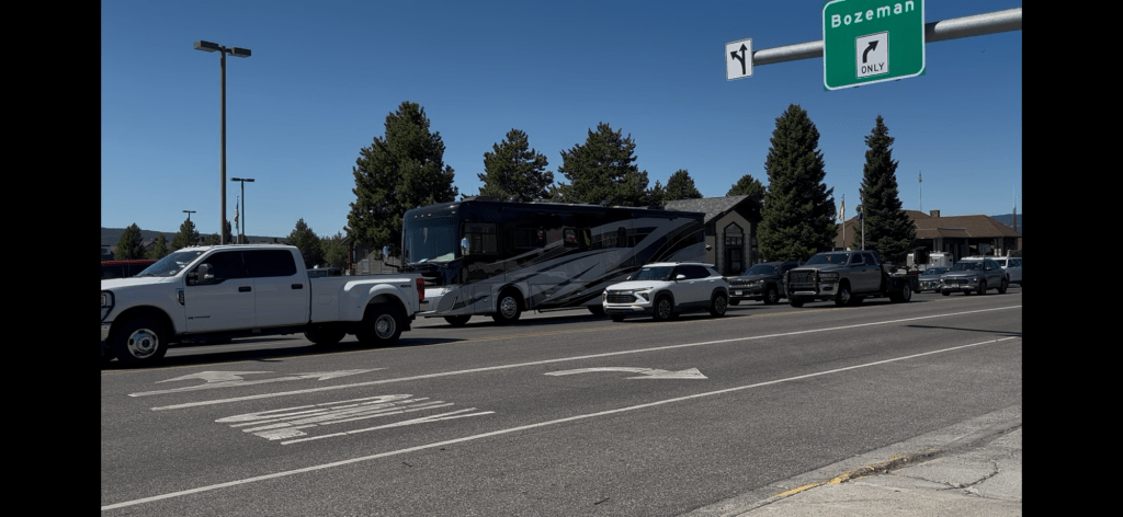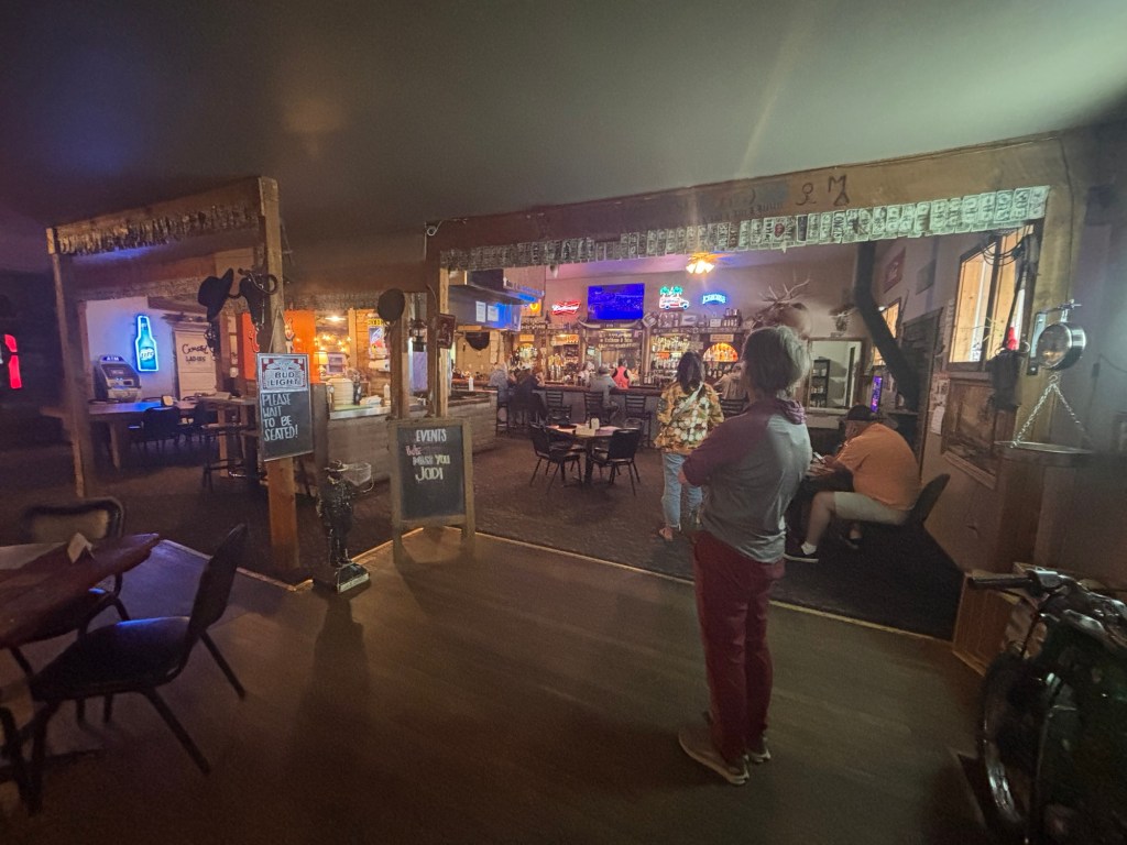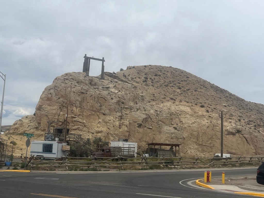 Wir sind etwas enttäuscht von diesem Örtchen. Eine Tankstelle, Steak Restaurant, ein Kaffee und Motel. Ins Café geht nicht mit Hund aber wir können es mitnehmen und essen beim Motel, es hat Tische draussen. Das Zimmer bekommen wir erst um 2 Uhr, also warten wir von elf an, bis wir unser Zimmer bekommen. Dann duschen und essen holen bei der Tankstelle, den Kaffee hole ich beim Empfang. Die Angestellte ist nicht nur mit der Kaffeemaschine überfordert, sondern auch mit allem anderen. Ich helfe etwas aus, sie haben Computermässig alles auf dem neuesten Stand, das ganze Buchungssystem vom Feinsten. Was man vom restlichen Motel nicht behaupten kann, alles ziemlich in einem desolaten Zustand, die Tür zu unserem Zimmer können wir nicht mal abschliessen.