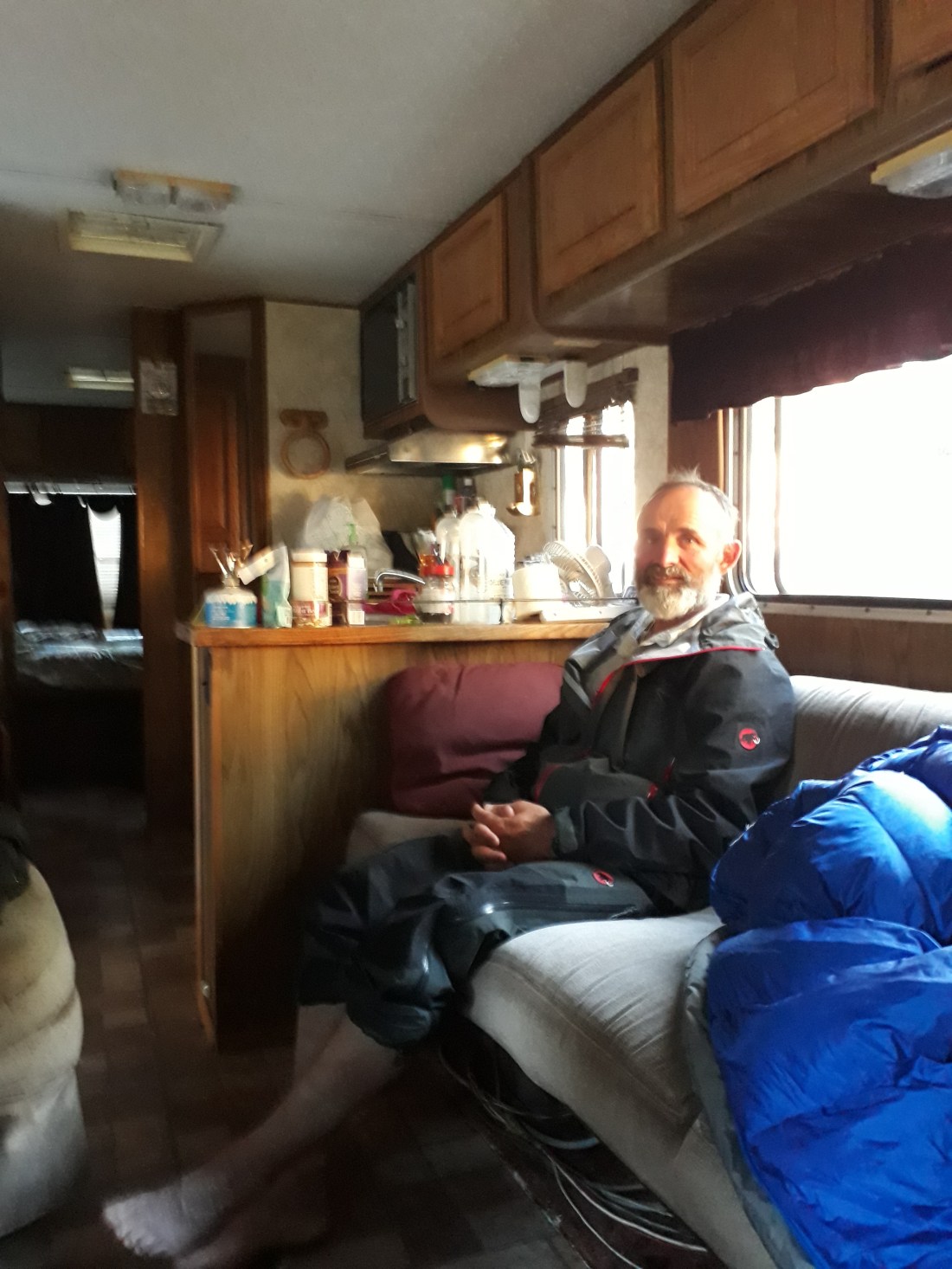 Als wir wieder zurückkommen geht es ihm wieder besser, und wir wandern zum Auto zurück. Er fährt uns zu einem staatlichen Campingplatz. Gemeinsam suchen wir mit ihm mit dem Auto einen guten Zeltplatz und fahren danach wieder zum Eingang zurück, um zu zahlen. Danach fährt er uns wieder zum Zeltplatz zurück. Das macht man hier so auf dem grossen Areal. Dann müssen wir auf Wiedersehen sagen, wie üblich gibt’s wieder eine herzliche Umarmung und weg ist Nils. Nach dem Zelt aufstellen spazieren wir noch länger durch den Campingplatz und halten da und dort einen Schwatz.