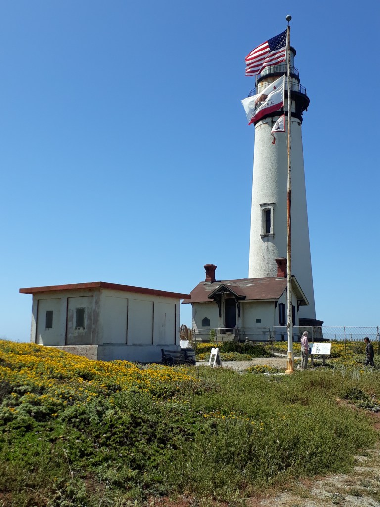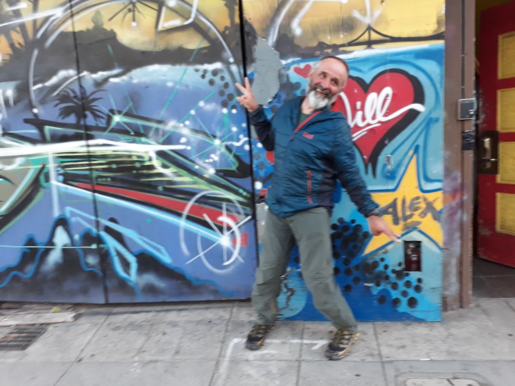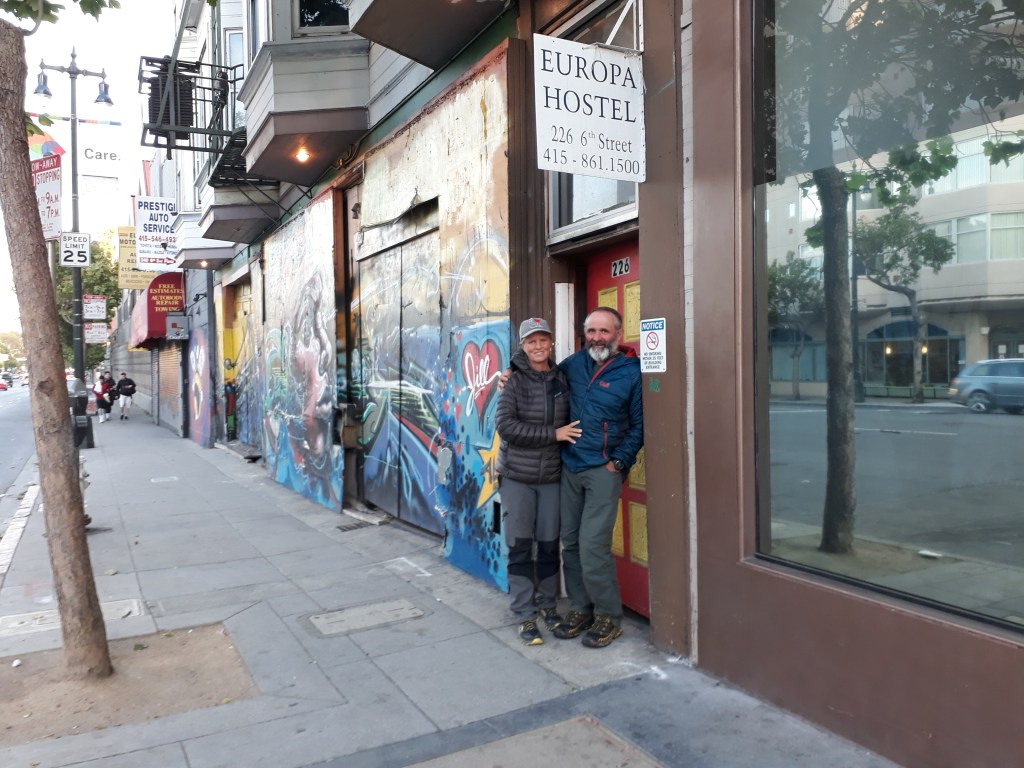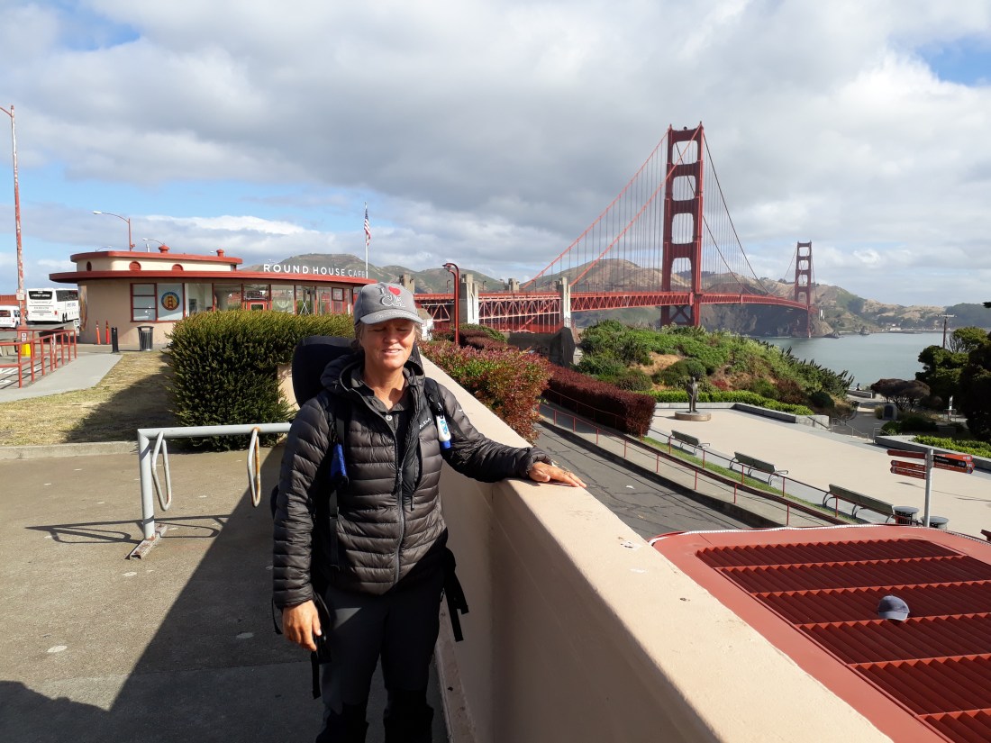 Bei einem Einkaufszentrum kaufen wir uns grosse Sandwiches und verputzen sie draussen an einen Tisch sitzend. Ein Mann kommt zu uns und fragt, ob wir hiken. Wir erzählen ihm, dass wir nach Santa Cruz unterwegs sind. Für ihn ist es kein Problem, uns dort hinzubringen. Er geht schnell einkaufen und dann geht`s los. Nils wohnt in dieser Gegend und hält an jedem Spot an. So sehen wir die tollsten Küstenabschnitte, den Leuchtturm, den Redwood Wald und eine Frau, die hier immer wieder die Klippen und das Meer malt.