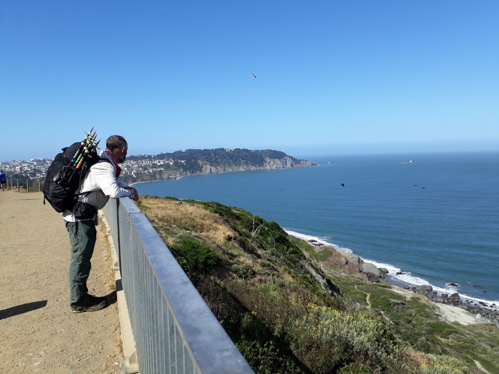 Es ist fast nicht möglich hier zu wandern, der Weg ist teilweise in den Ozean gefallen. Also gehen wir mit einem Bus weiter Richtung Süden. Wir lieben Busfahrten. Die öffentlichen Busse sind genial, sie fahren durch alle Seitenstrassen in die hintersten Ecken der Wohngebiete. Dadurch bekommt man Einblicke in Gebiete, die man sonst nicht sehen würde. Mal ein riesiges Areal, dann alles kleine Verschläge oder Häuschen, ganz eng und verschachtelt, vielleicht eine Arbeitersiedlung von Mexikanern. Wenn du Glück hast, was wir meistens haben, ist dein Sitznachbar gesprächig, das ist wie ein Audio Guide. Für wenig Geld erhälst du eine Tour und erfährst viel über Land und Leute.