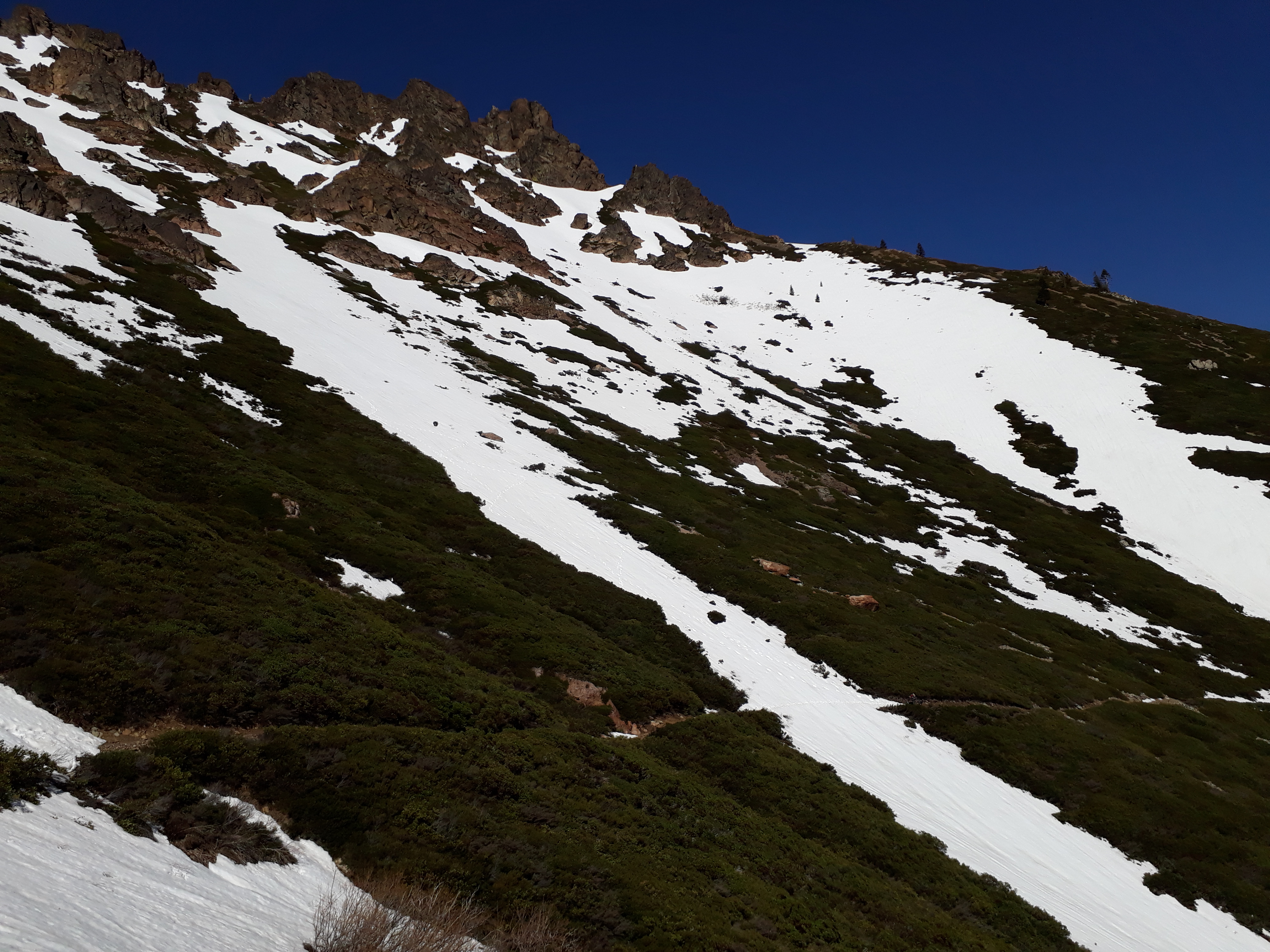 Wir entschieden uns, hier schräg zum Hang abzusteigen. Andy und ich machten feste Tritte in den Hang, so ging es. Wir dachten, es macht kein Sinn, wenn wir alle zusammen den Hang abrutschen, weil jemand hinter uns ausrutscht. Dominoeffekt wäre nicht gut.