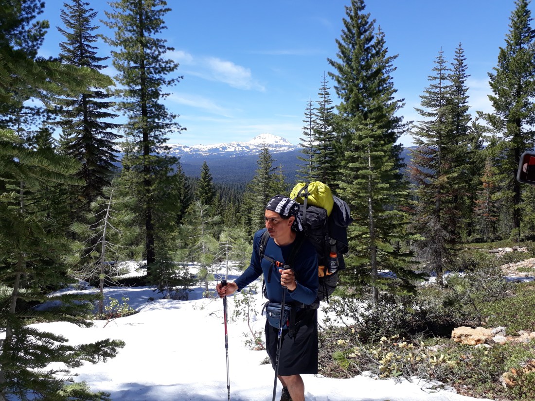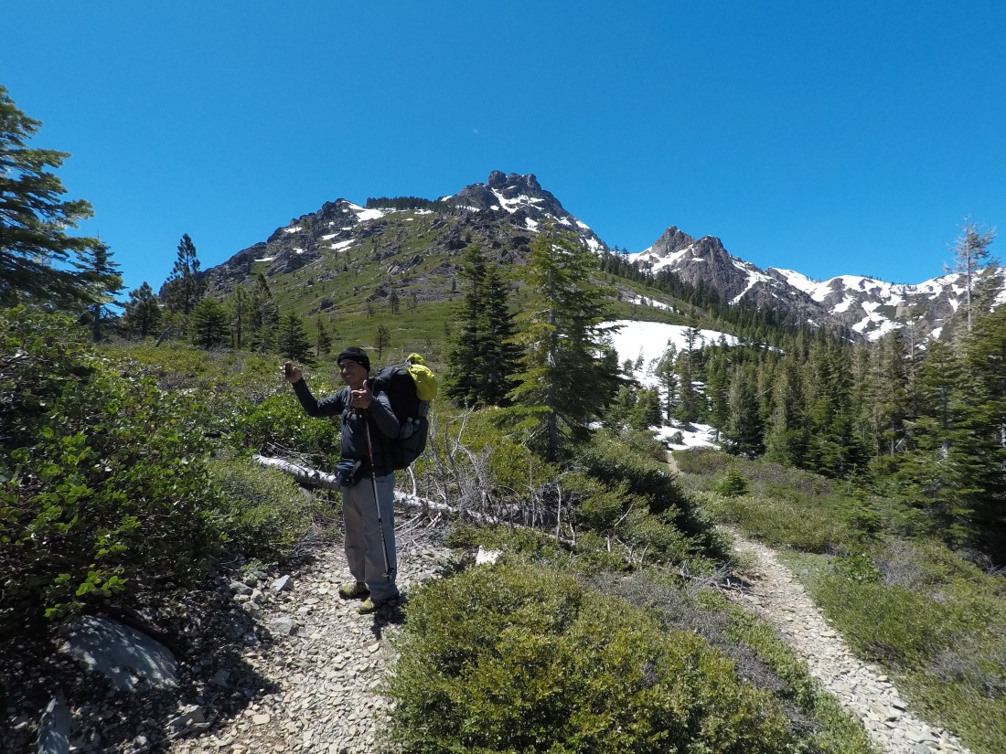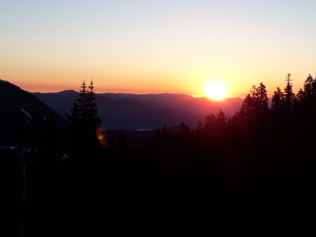 Um 5 Uhr aufgestanden, etwas Kleines gegessen, und dann ging’s gleich mal den Berg hinauf. Als ich mal hinauf schaue sehe ich mit Entsetzen einen Bärenkopf. Dieser ist über unsere Anwesenheit nicht begeistert. Er dreht sich ab, verschwindet im Wald. Wir benützen zum ersten Mal unser Pfeifen. Der Bär gibt uns durch lautes Grummeln deutlich zu verstehen, dass es sein Revier ist. Wir gehen hier einfach rechts.