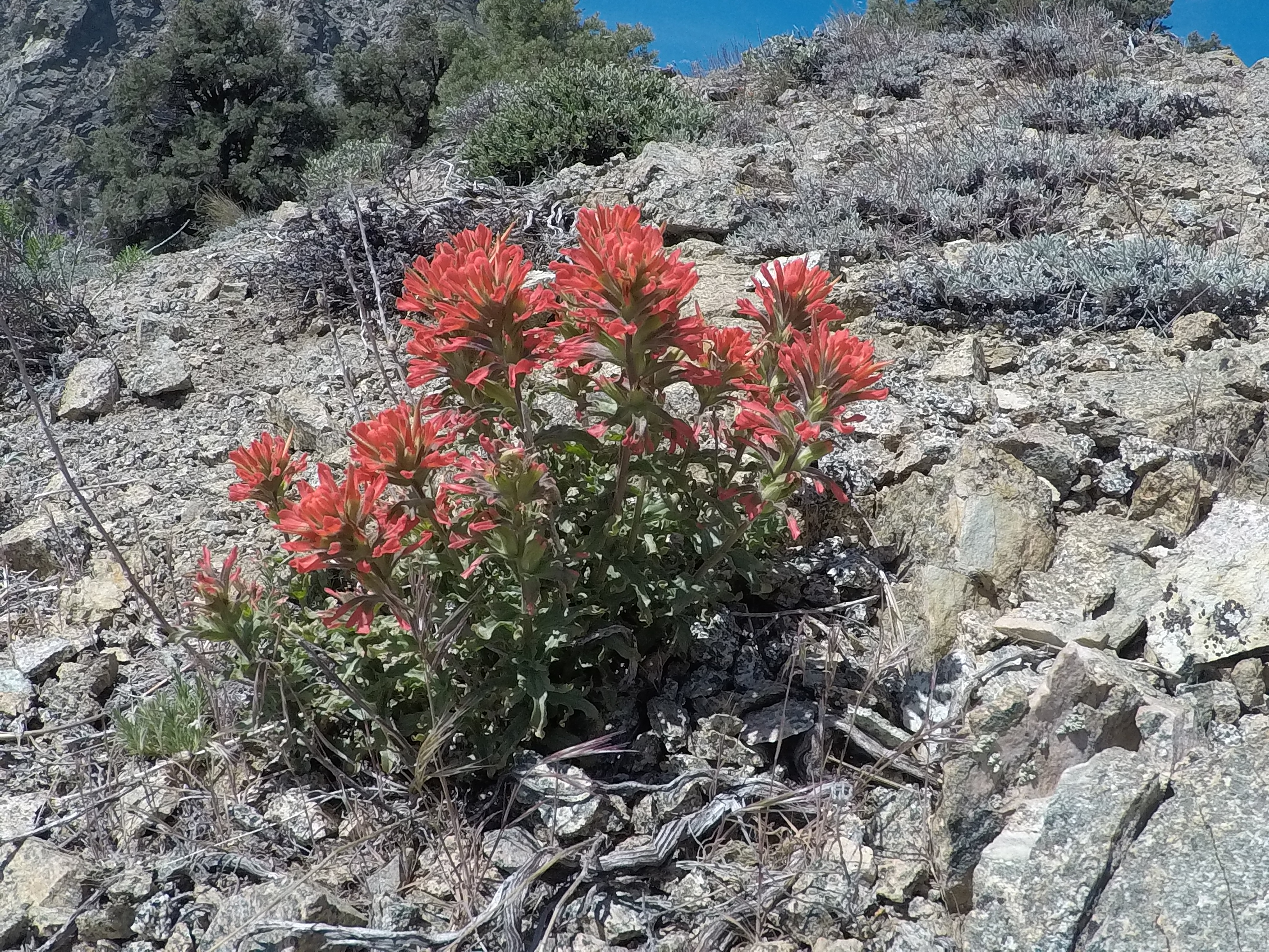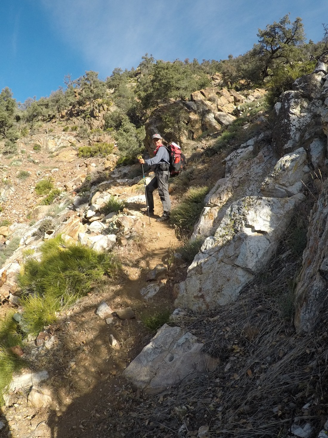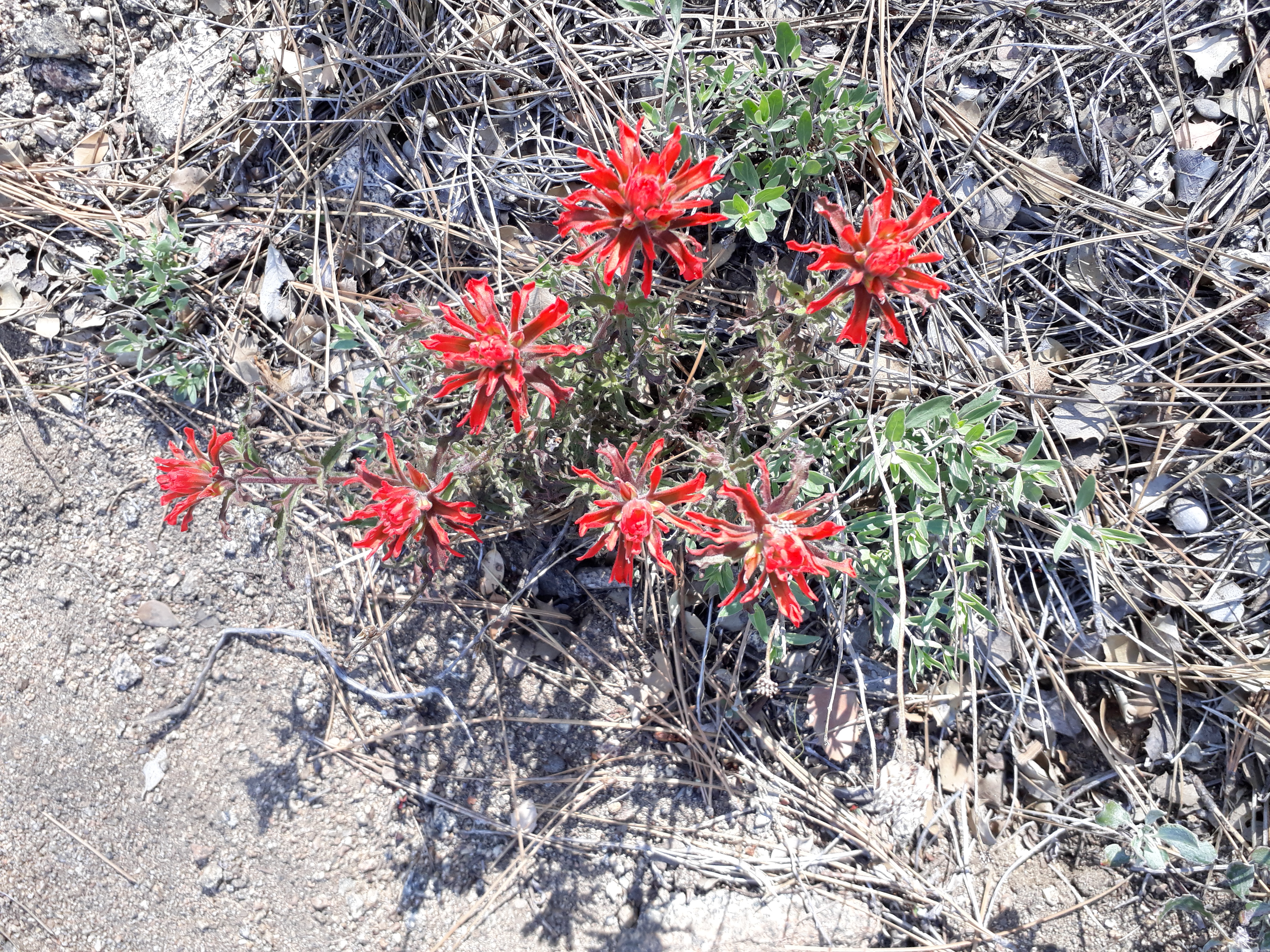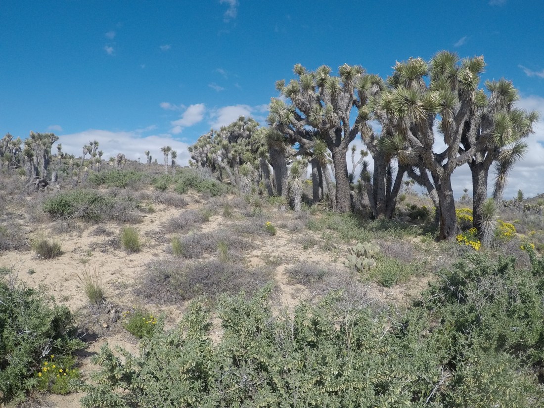 Am Nachmittag sind wir hinunter in ein Tal gewandert, um danach gleich wieder auf der anderen Seite hochzusteigen. Immer Richtung Kennedy Meadows, solange es geht. Die Gegend war weniger schön, alles verbrannt. Nur viel Sand, kleine Büsche und ab und zu einige kleine Blumen, die sahen recht hübsch aus.