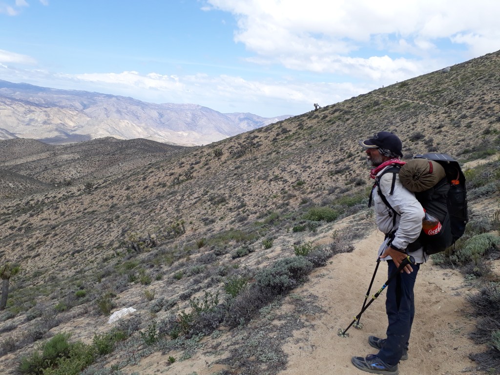 Irgendwann am Nachmittag klärt es auf, es wird schön. Juhui, eine grosse Pause, alles zum Trocknen auf die Büsche verteilen und schon ist der Morgen vergessen. Wir müssen weiterlaufen bis es dunkel wird. Auf diesem Abschnitt haben wir etwas knapp Essen dabei. Andy war es in Tehachapi mit dem verdorbenem Magen schwer gefallen einzukaufen.