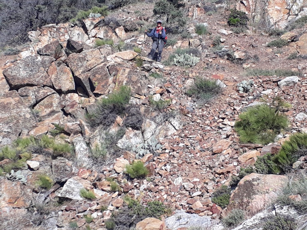 Eine sehr einsame Gegend, es scheint wirklich nichts zu haben, aber sehr schön. Gegen Mittag finden wir unter einem riesigen Kaktusbaum Wasser und Essen. Dadurch konnten wir unser knappes Essen ein wenig aufstocken mit Nutella, Erdnussbutter, salzigen Biskuits etc. Und Wasser im Überfluss. An dieser Stelle hätten wir nicht mehr mit sowas gerechnet, das ist schon ungewöhnlich, dass jemand einen derartigen Aufwand betreibt. Ich sage zu Andi: «Siehst du, ist gar nicht so schlimm mit dem Essen.» Das macht ihn sauer und er sagt, dass ich das nicht wissen konnte, das hier noch eine Trail Magic ist. «Eben, ist doch super», antworte ich, «diese Überraschung». In so einem Moment, liebt er mich besonders.