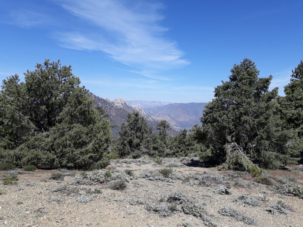 Mittagessen machen wir an einem Ort mit Aussicht auf das imposante Bergmassiv von Tehachapi. Medical kommt an, wir reden eine Weile und dann geht er weiter. Medical ist schneller als wir, wir trödeln heute ein wenig. Am Abend wollen wir vom Berg hinunter, da wo es in einen Wald geht. Dort stellen wir das Zelt auf. Hier wird es recht kühl, darum essen wir im Zelt. Hoffentlich ist es morgen nicht regnerisch, bis jetzt hatten wir viel Glück mit dem Wetter.