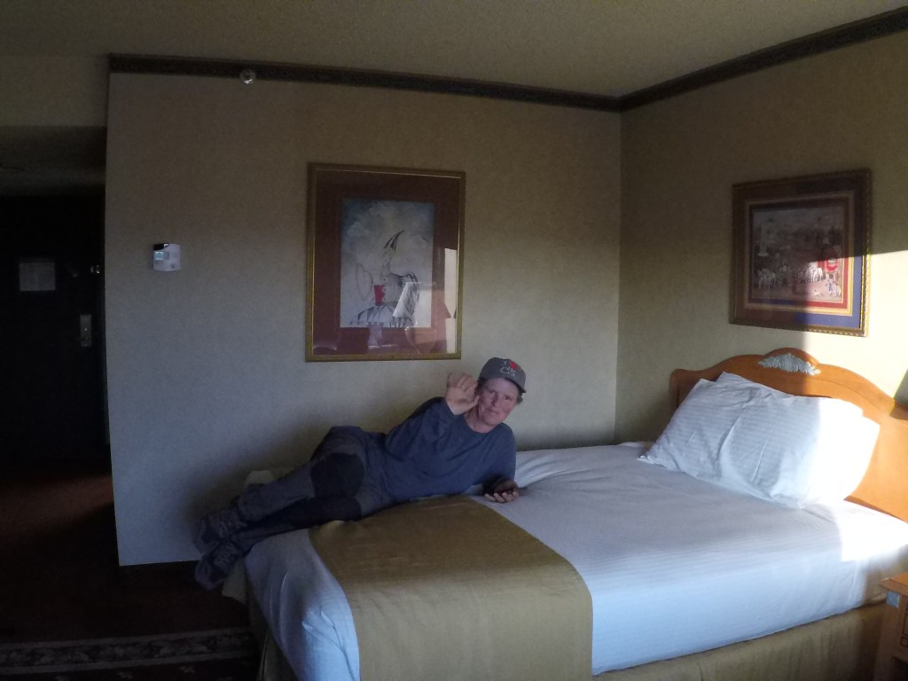 Nach dem Mittagessen sind wir losgefahren nach Reno. Es dauerte ewig bis wir im Tal waren, vorbei am Death Valley. Am Abend checkten wir in Reno im noblen Hotelkasten Circus Circus ein, nahmen zu fünft ein Zimmer. Mit unserem mittlerweile wilden Aussehen und Hiker-Outfit sahen wir sowieso unpassend aus. Die anderen Gäste müssen sich gedacht haben, was diese Obdachlosen in einem Spielerhotel wollen. Am Abend sind wir mit Fred noch sehr preiswert Tacos essen gegangen, eine riesige Portionen für wenig Geld. Wenn man aussieht wie wir jetzt, wird es entspannter. So wie wir aussehen gibt man uns eher noch was, aber sicher kommt keiner auf die Idee, uns Stinker auszurauben.