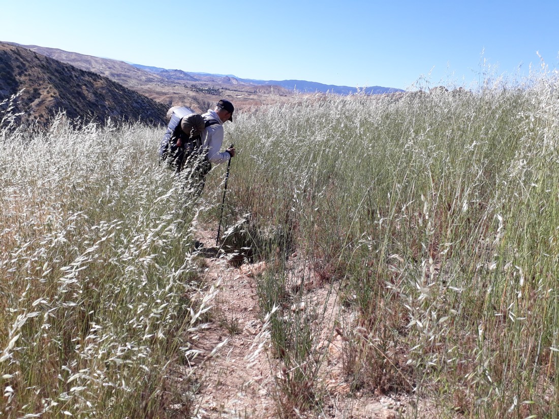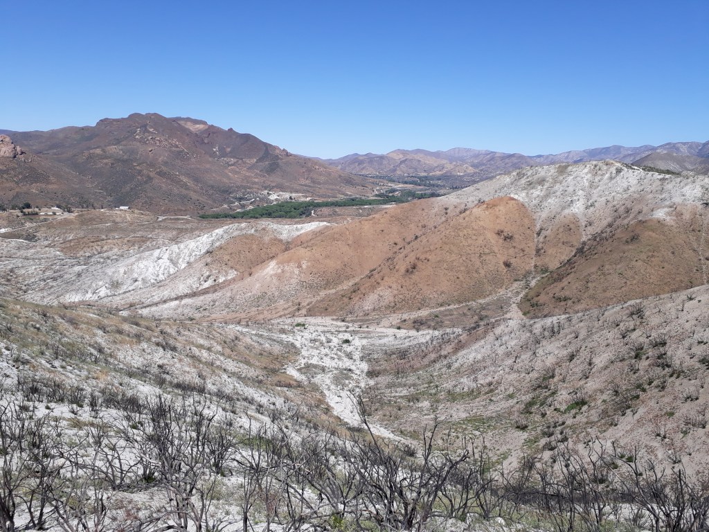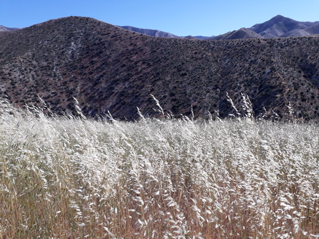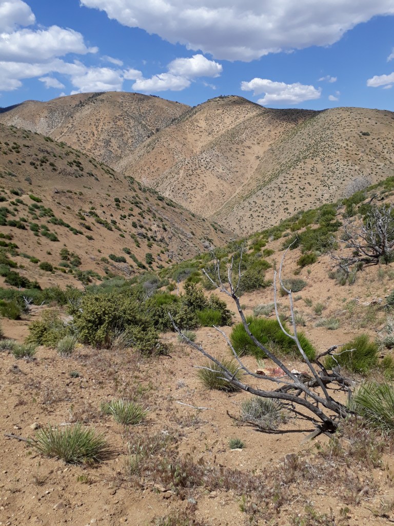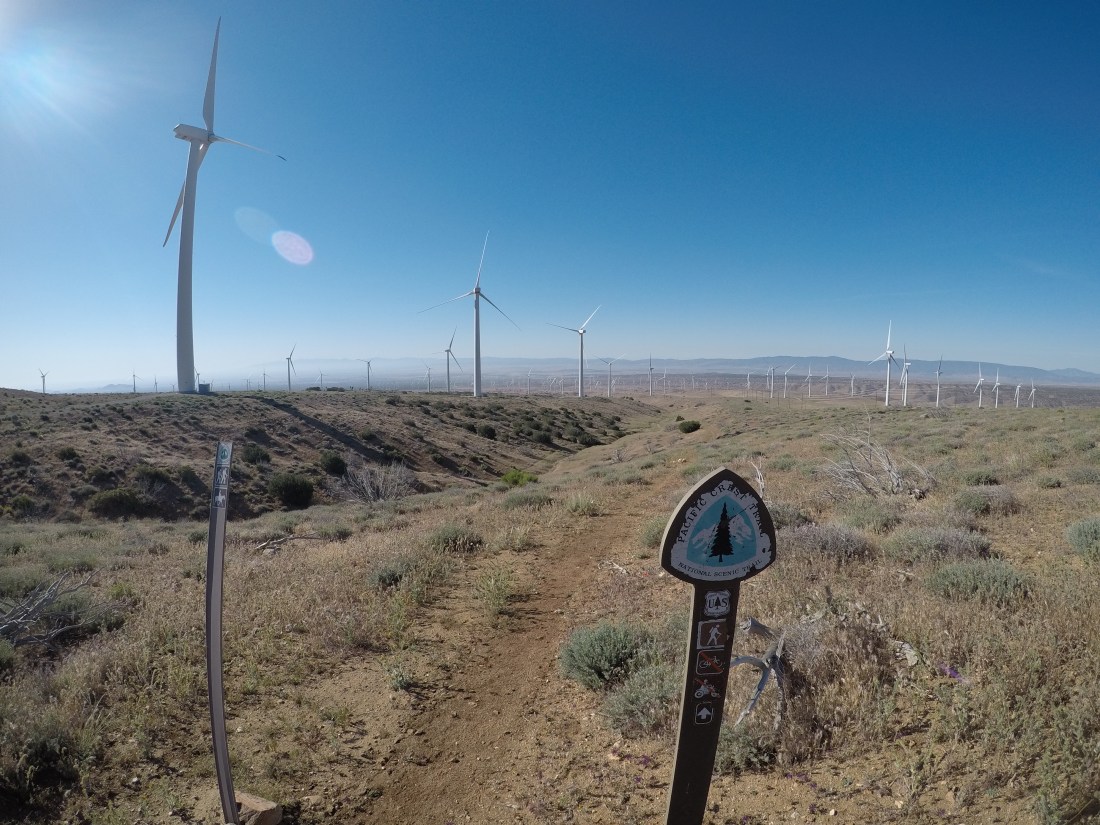 Um 8 Uhr, bei der Stelle, wo man Wasser aus der Leitung des Aquädukts lassen kann, machen wir eine Pause. Weiter ziehen wir durch die Windfarmen, immer leicht hinauf bis wir in einen Hang laufen. In diesem Moment sehen wir auf der Gegenseite einen Mountain Lion (Berglöwen) über den Kamm gehen. Wir erschrecken, ist schliesslich kein Hund. Er schaut zu uns und verschwindet sogleich hinter dem Bergkamm. Gehört haben wir schon viel von diesen Berglöwen, aber wir hätten nicht gedacht, jemals so ein Tier in natura zu sehen.