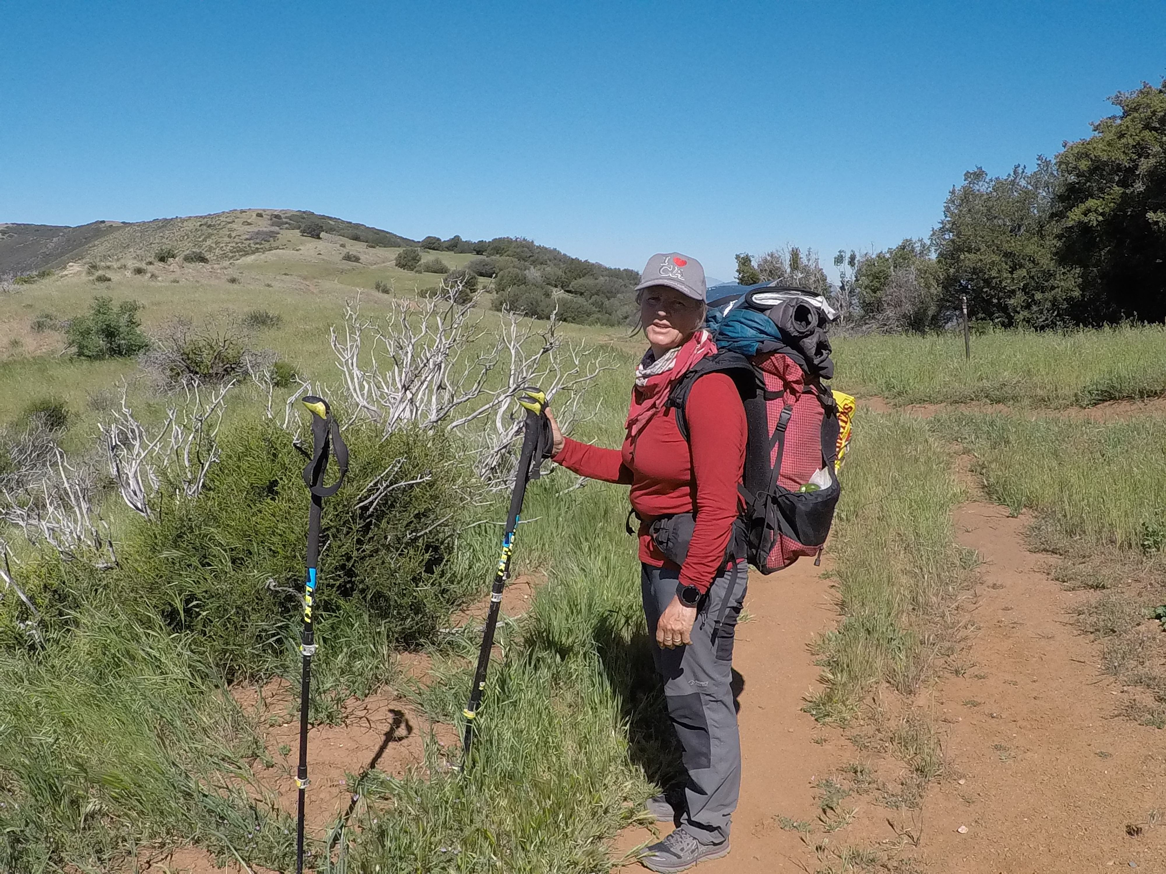 Alle Hiker suchen Schatten unter einem grossen Baum, um der Hitze zu entfliehen. Wir gesellen uns dazu und schlafen ein wenig. Nach etwa drei Stunden halten wir es für besser nun weiter zu gehen, ansonsten sind wir vom Rauch der anderen Hiker «stoned». Es wird stark gekifft und für uns ist das nichts. Der Vorteil ist einzig, dass ich meine Blasen nicht mehr spüre, ohne Schmerzmittel. Darum gehen wir weiter trotz der Hitze. Der Nachmittag ist streng, denn es geht zudem hinauf und hinunter. Es ist der pure Wahnsinn, als ob du langsam gegart wirst. Die Sonne brennt und kaum Schatten. Gegen Abend kommen wir zu einem Platz, der wieder einmal Trail Magic hat. Nach der Pause suchten wir schnell einen einen guten Zeltplatz und sind total KO schlafen gegangen.