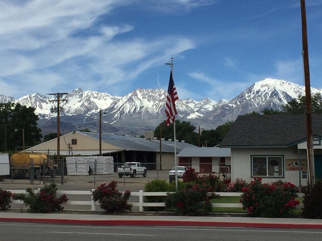 6. Juni: Wir fahren von Independence mit dem Bus nach Bishop, die Felder links und rechts von der Strasse sind sehr grün. Die Häuser und die Gegend vor Bishop sehen teilweise verwahrlost aus, einfach alles in die Landschaft gestellt, was man nicht mehr braucht: Autos, Baumaterial, Haushaltsgeräte ect.