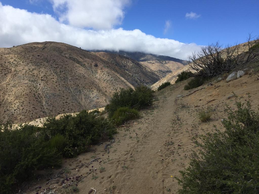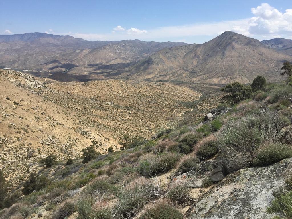 Um 11 Uhr erreichen wir den Tylerhorse Canyon, danach geht es hinauf, um bald darauf wieder in den nächsten, den Gamble Spring Canyon, hinunter zu steigen und dann nur hinauf, bis zu einer Trail-Magic zuoberst, leider war es zu windig, um zu bleiben.