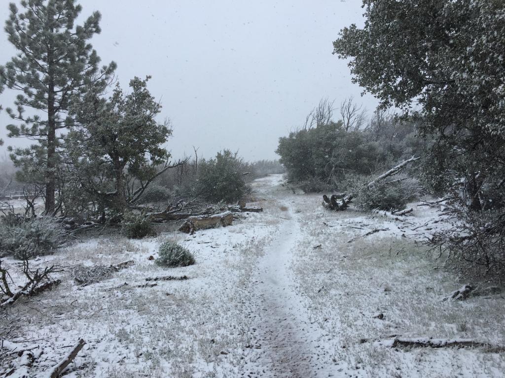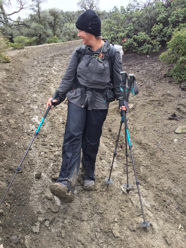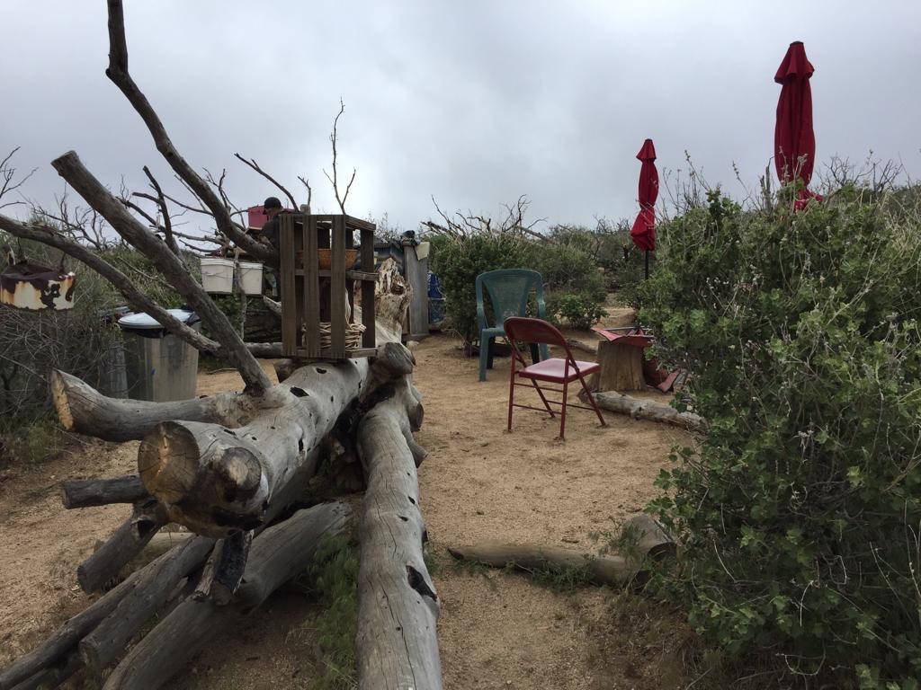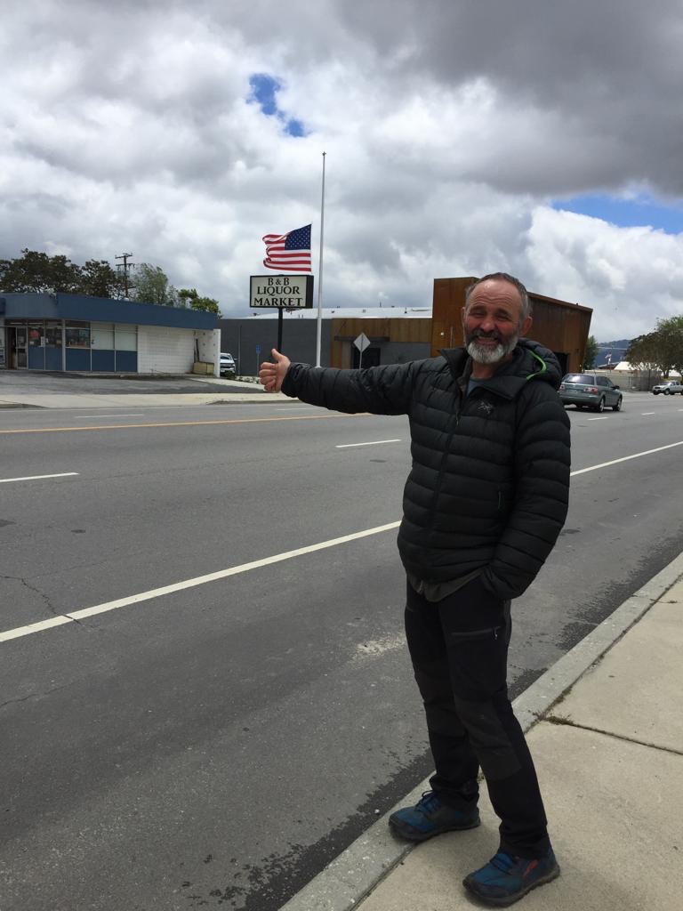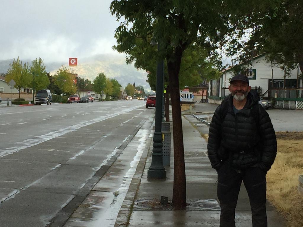Es regnet auch heute und nicht wenig. Wir gehen um 8 Uhr in die Bäckerei, die ist einfach super, feine Sachen zum essen und immer Leute im Café zum reden. Wir setzen uns an einen Tisch und kommen gleich mit einer Frau ins Gespräch, die in Kanada lebt und hier in Kalifornien zum wandern ist, wegen dem guten Wetter, das finden wir lustig! Als wir ihr erzählen, dass wir heute zurück auf den Weg gehen, organisiert sie uns gleich einen Fahrer, der uns zum PCT fährt – der Tag beginnt ja gut. Nach dem Kaffee fährt uns dann ein älterer Herr zum Weg beim Highway 58, es sind etwa 14 Meilen dahin, er freut sich die Hiker zu fahren, das ist für ihn Abwechslung.