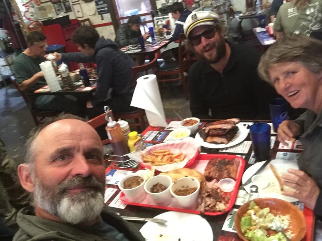 Der Zeltplatz ist auf dem örtlichen Flughafen, ein sehr schöner Platz, aber etwas laut, dahinter geht das Bahngeleise durch und die Züge brauchen ihr Horn intensiv. Wir stellen das Zelt auf und gehen mit «Seht Rogen» (Trailname) zurück ins Dorf zum essen. Unglaublich, der Redhouse BBQ-Laden ist so voller hungriger Leute, ganz bestimmt nichts für Vegetarier, die Portionen sind monströs. Wir sind müde und gehen danach schlafen.