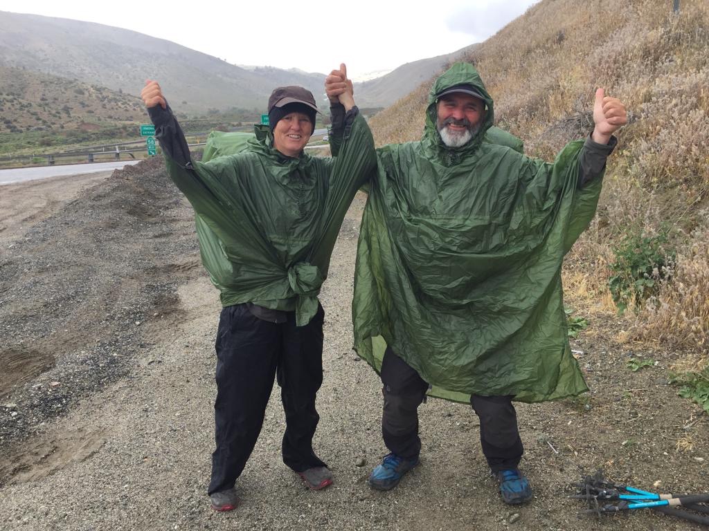 Es geht runter und danach wieder rauf, Poncho an und wieder ab. Der Wind ist sehr kalt, wir behalten die Handschuhe und Kappe plus Buff (Kopfschal) an. Als es mal ein wenig Sonne hat essen wir, richtig viel, das hebt unsere Stimmung. Nach dem Essen geht’s gleich weiter mit dem Regen. Andy sagt: «Jetzt reicht es mir, ich ziehe den Poncho nicht mehr an».