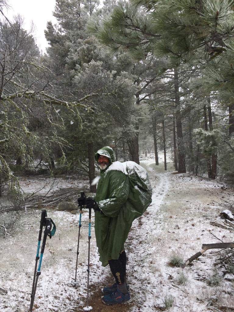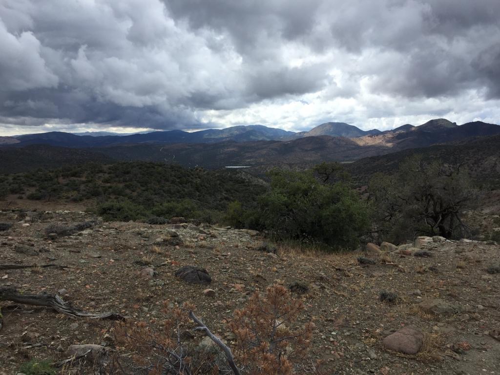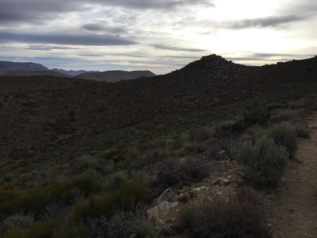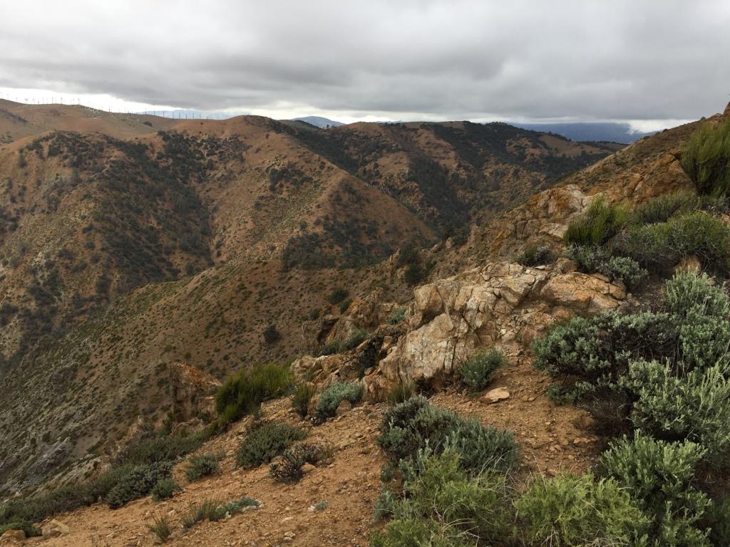 Um 6 Uhr sind wir losgezogen, zuerst zum Wassercache und dann 400 Höhenmeter hinauf auf den Spinner Peak. Um 10 Uhr sind wir auf dem Gipfel, ca. 2000 m.ü.M, bis dahin ziehen wir zweimal unsere Ponchos an und 30 Minuten später wieder ab, langsam aber sicher nervt dieses Wetter.