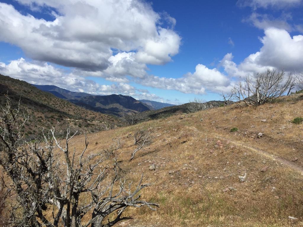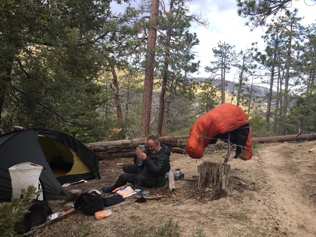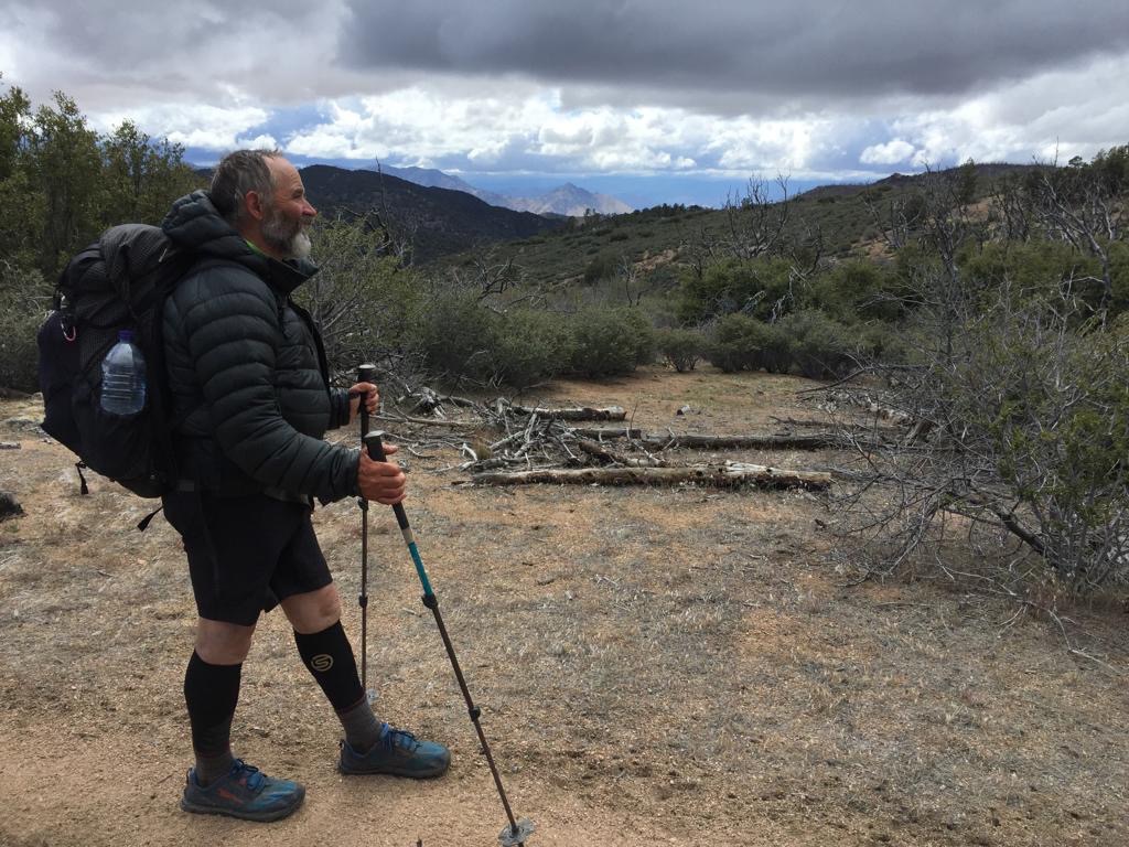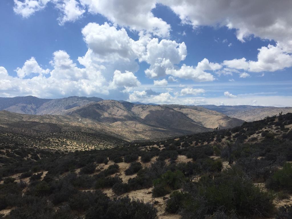 Es war heute superschön zum laufen, mit einigen Wolken und immer wieder genialen Aussichten. Wir machen etwa eine Meile nach der Wasserquelle (Robin Bird Spring) Feierabend, schlagen gleich neben dem Weg das Zelt auf. Schluss bei km 971 (Meile 603), gelaufen sind wir 34 km, also 21 Meilen.
