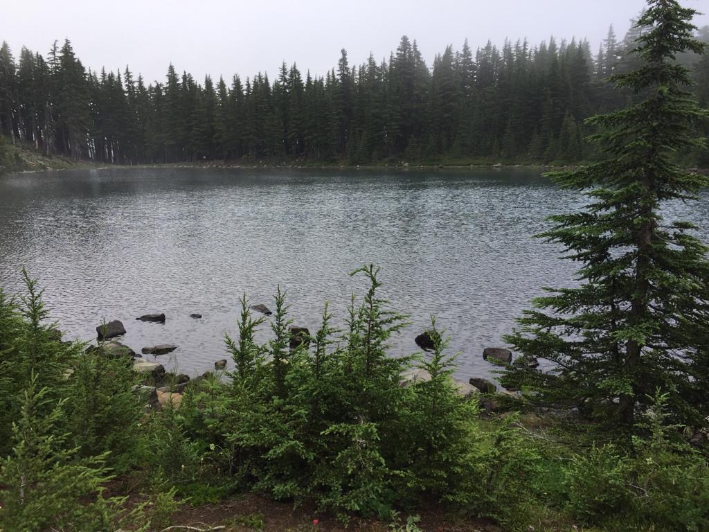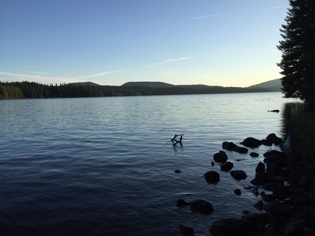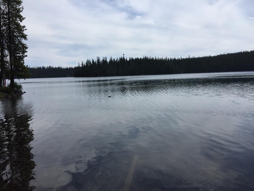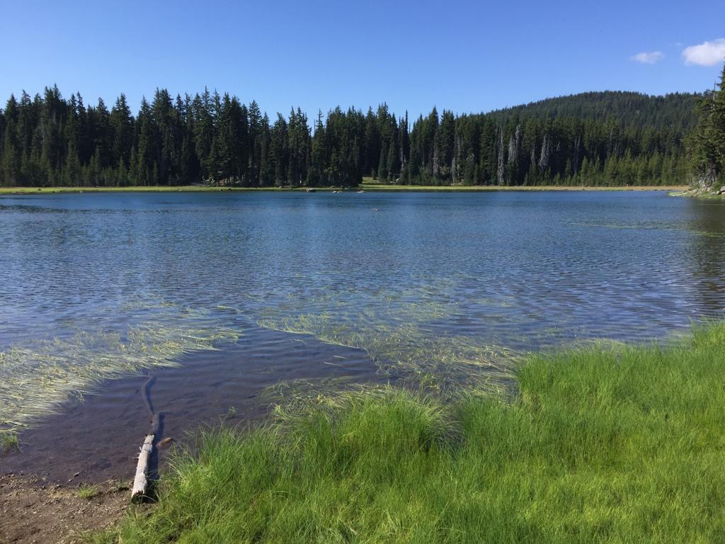 Wir laufen bis zum See Timothy Lake, alles im Wald. Bei einer Quelle nehmen wir noch Wasser für den Abend mit. Das hat richtig gut getan, mal einen ganzen Tag durch intakten Wald zu gehen, super. Wir fühlen uns sehr wohl, die Luft ist kühl und der Wald riecht herrlich. Hier scheint alles im Gleichgewicht zu sein.
