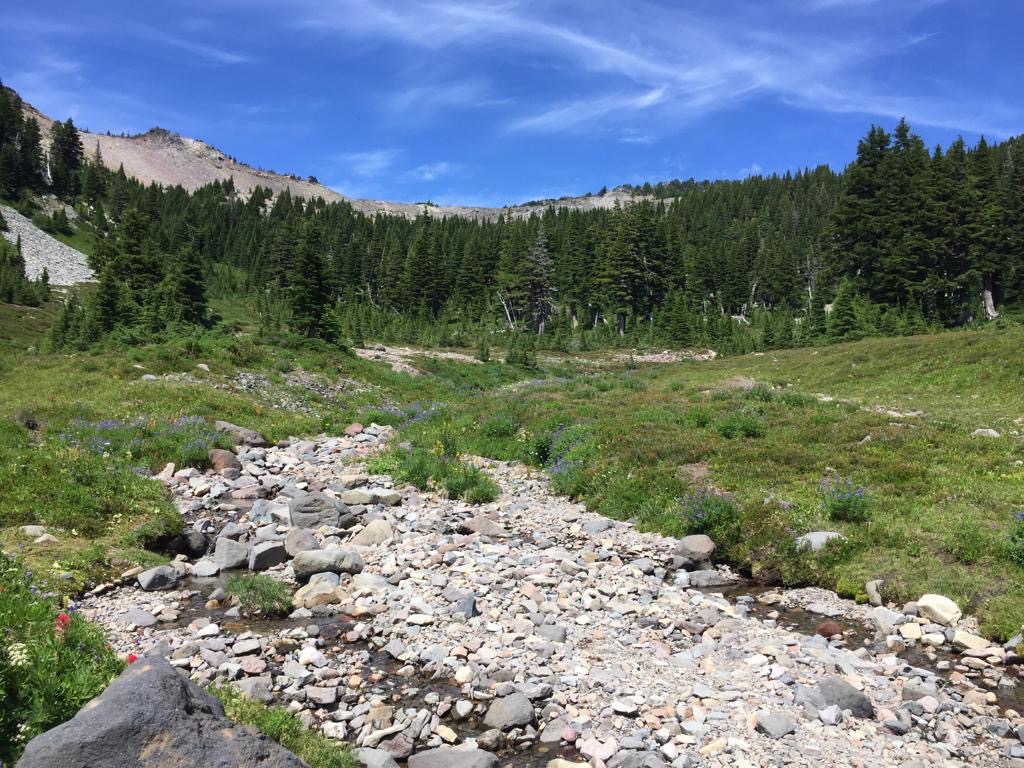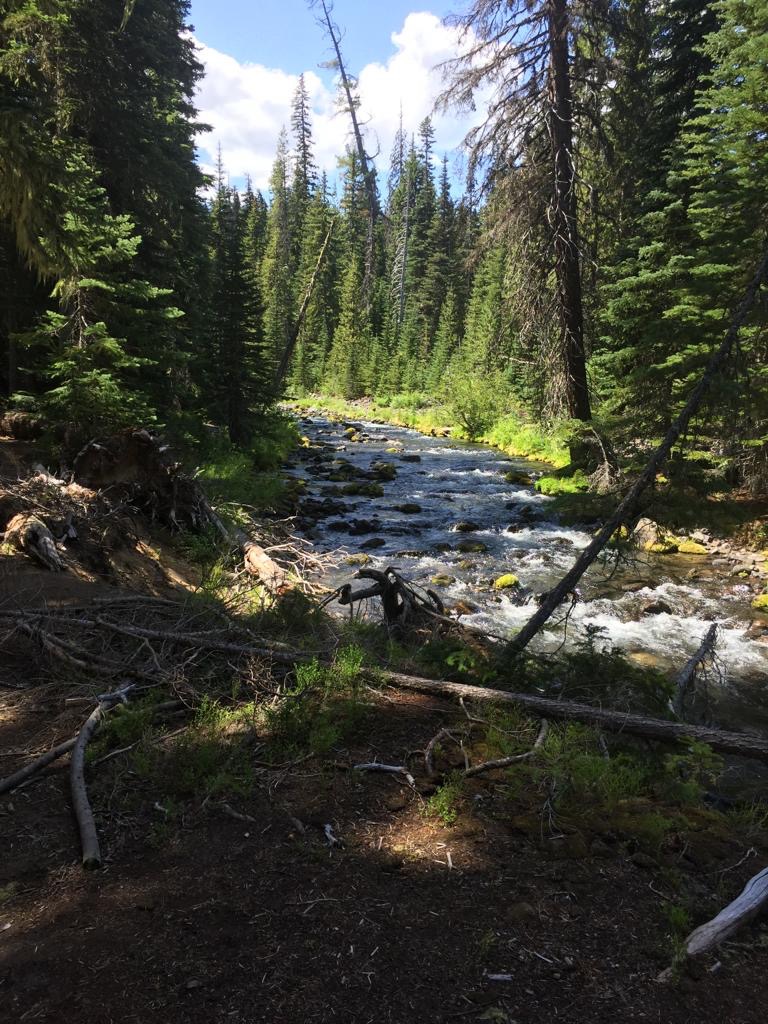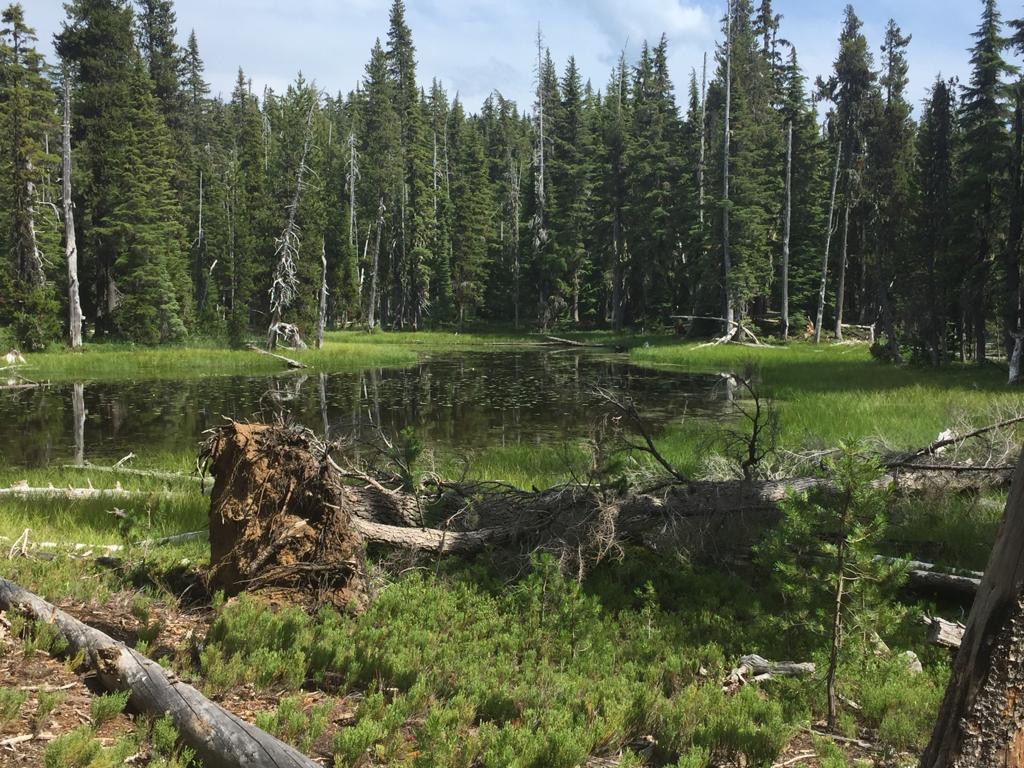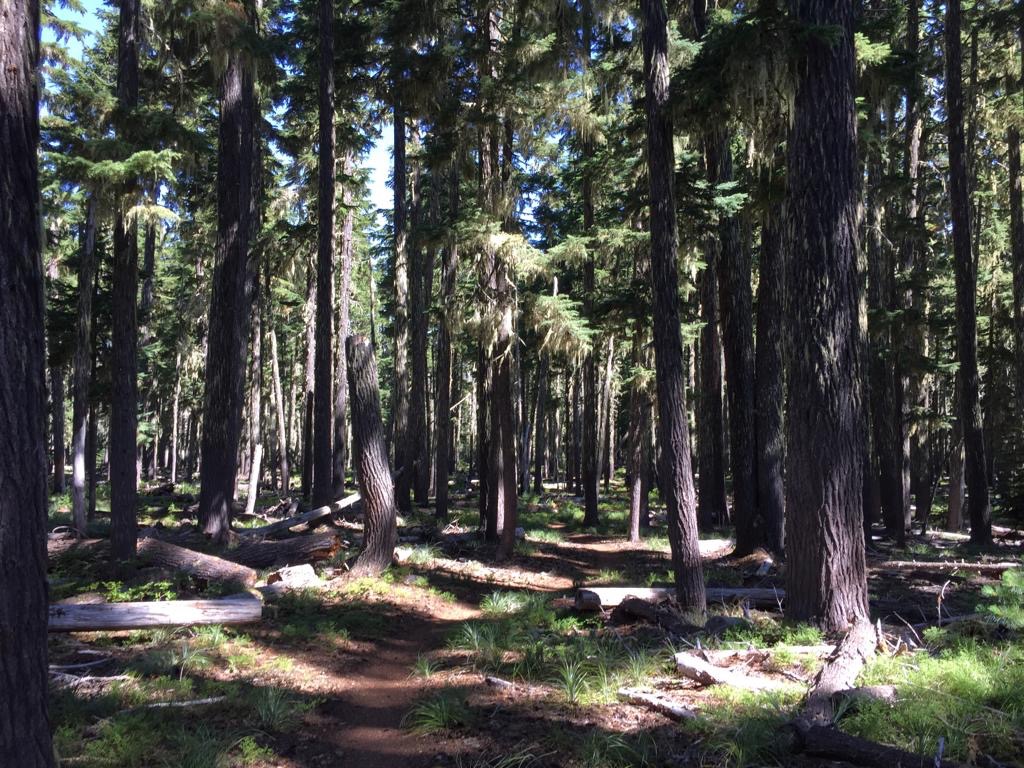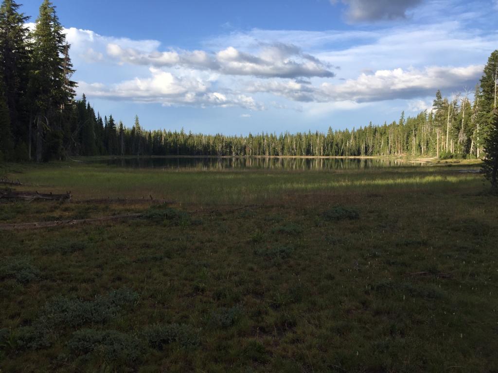 Wir laufen bis zum See Timothy Lake, alles im Wald. Bei einer Quelle nehmen wir noch Wasser für den Abend mit. Das hat richtig gut getan, mal einen ganzen Tag durch intakten Wald zu gehen, super. Wir fühlen uns sehr wohl, die Luft ist kühl und der Wald riecht herrlich. Hier scheint alles im Gleichgewicht zu sein.
