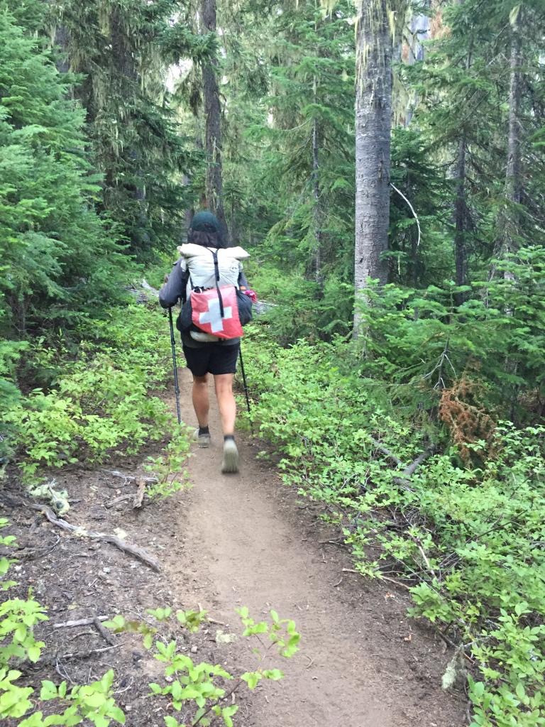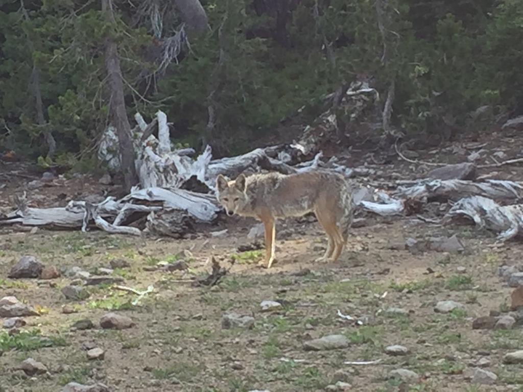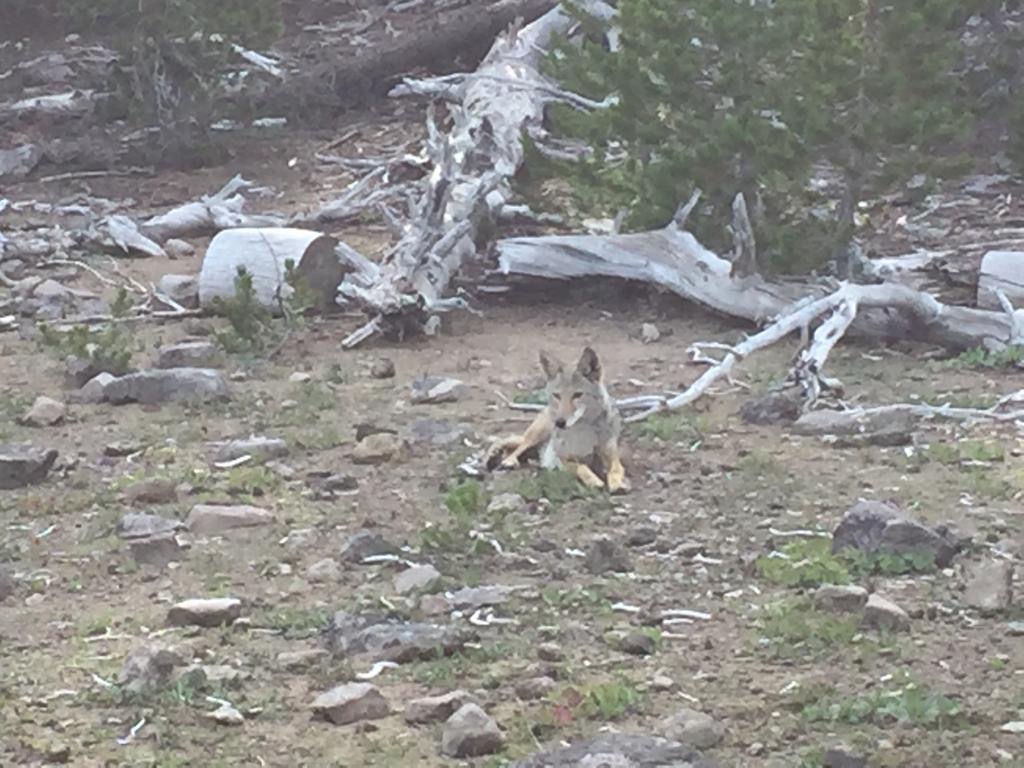 Um 6 Uhr gehen wir los, es geht gleich in den Wald, ziemlich dichter Wald. Wir laufen, plötzlich rennt etwas Grosses mit Fell durchs Gebüsch auf uns zu. Wir sind erleichtert, als wir erkennen, dass es nur der Schäferhund eines Hikers ist. Der bellt uns zwar an und ist von uns nicht begeistert, aber von dem lassen wir uns nicht beeindrucken. Es wäre was anderes, wenn es der Coyote von gestern gewesen wäre.