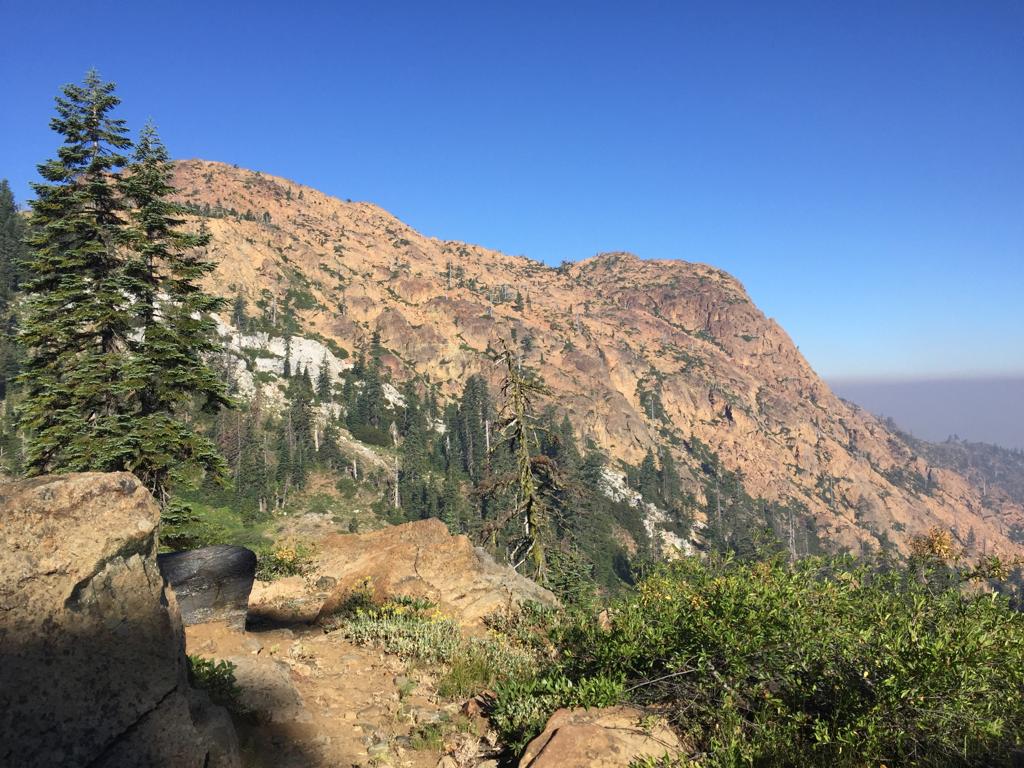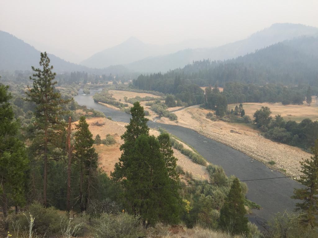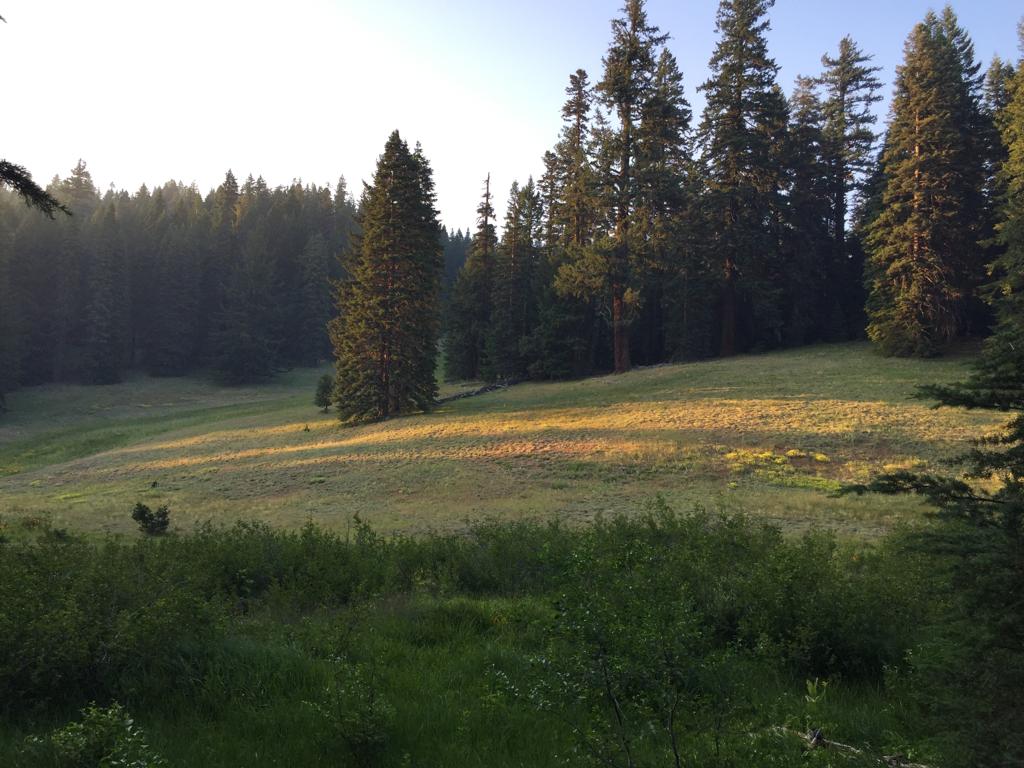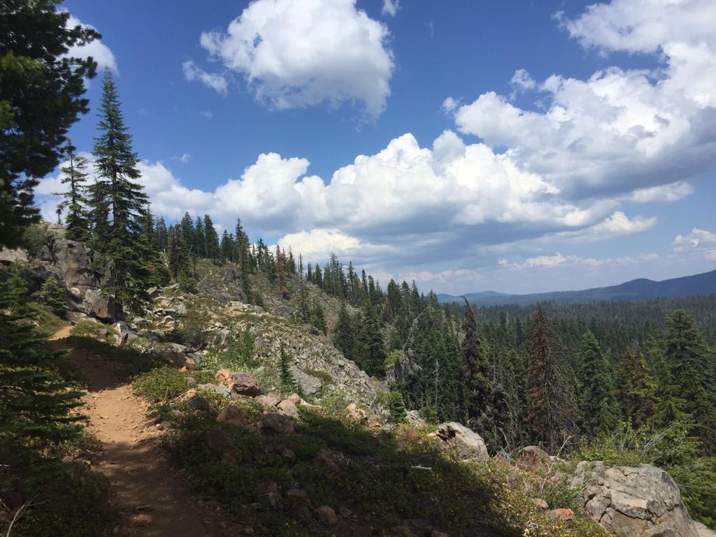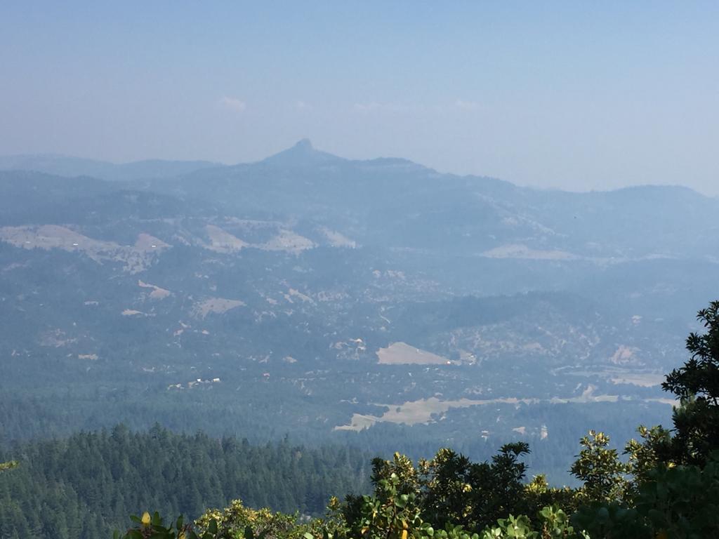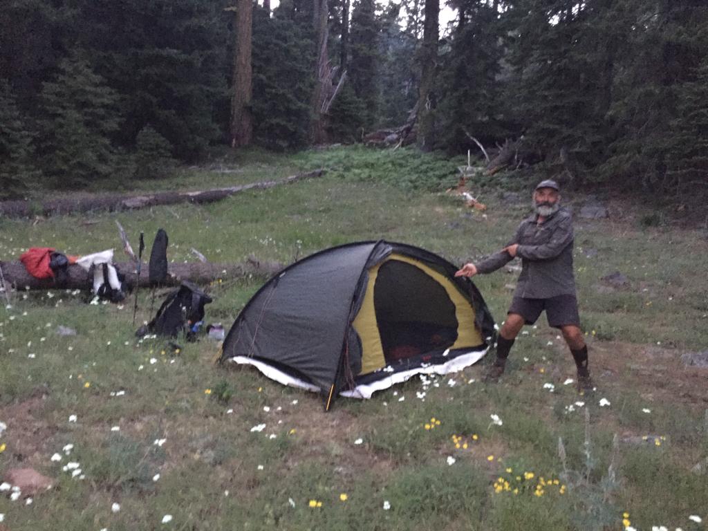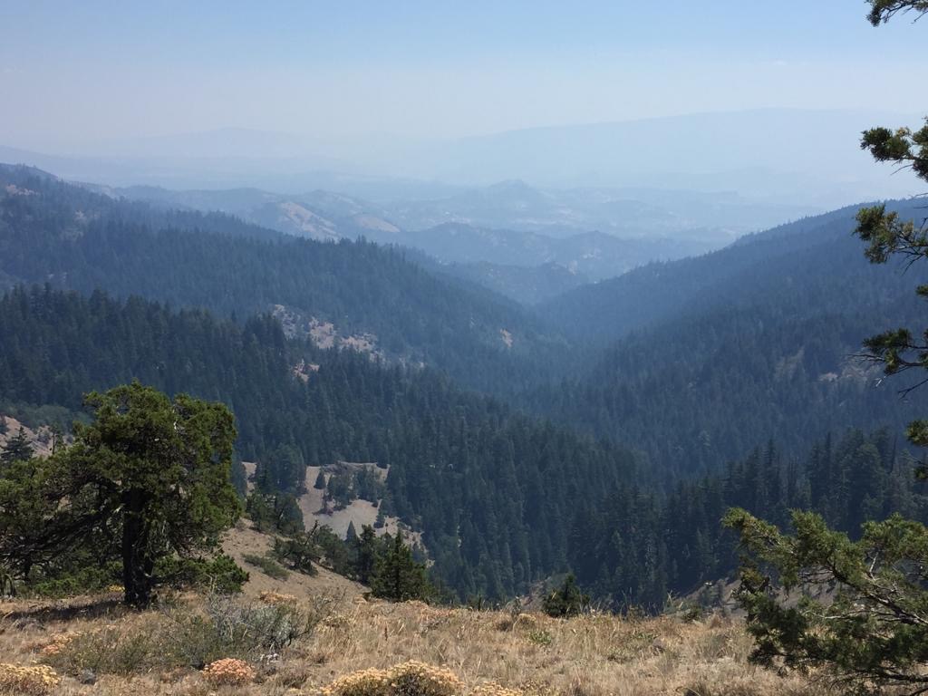 Am Nachmittag geht der Weg etwas über 2200 Höhenmeter hinauf, ist anstrengend. Von da oben sieht man den riesigen See Upper Klamath Lake, erstmals wieder eine tolle Weitsicht ohne Smog von den Waldbränden. Danach geht der Weg auf die andere Seite dem Hang entlang. Wir laufen noch hinunter zu einem Bach, stellen das Zelt und machen uns Kartoffelstock mit Curry-Reis und Käse, das schmeckt gar nicht schlecht.