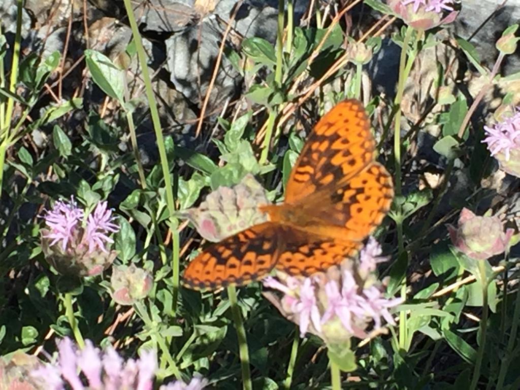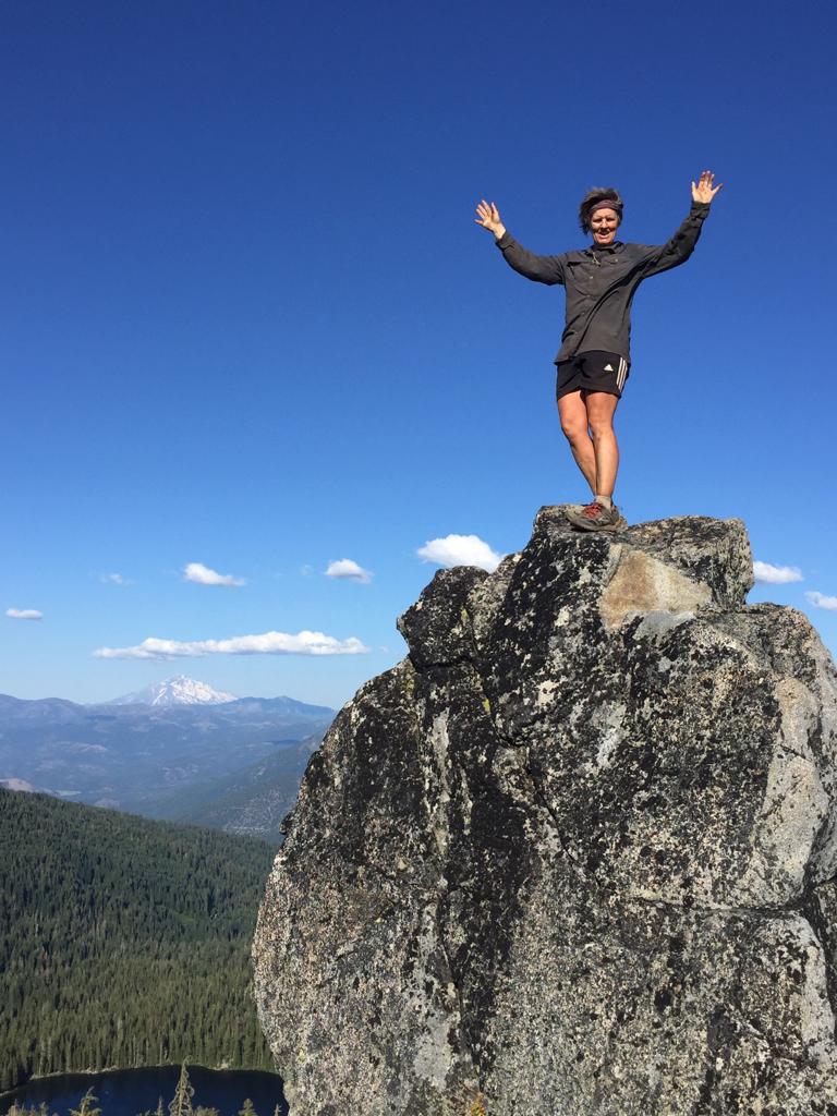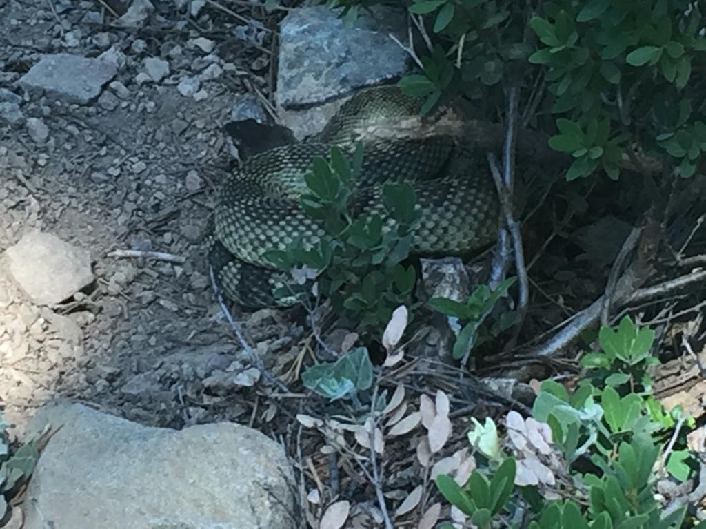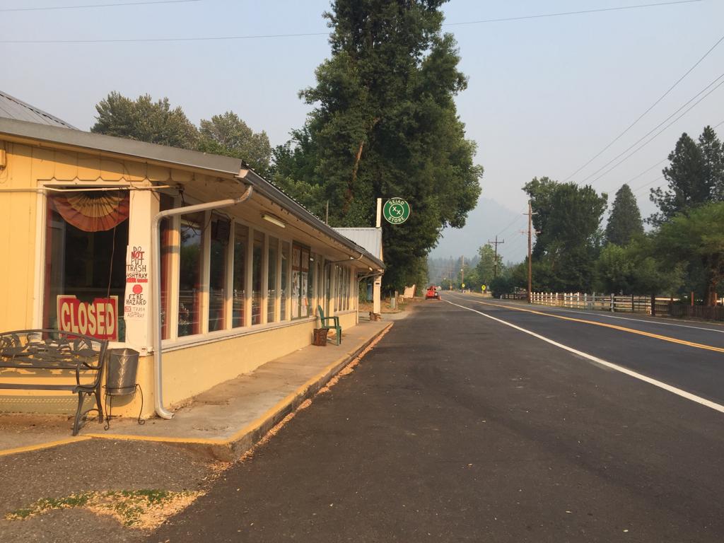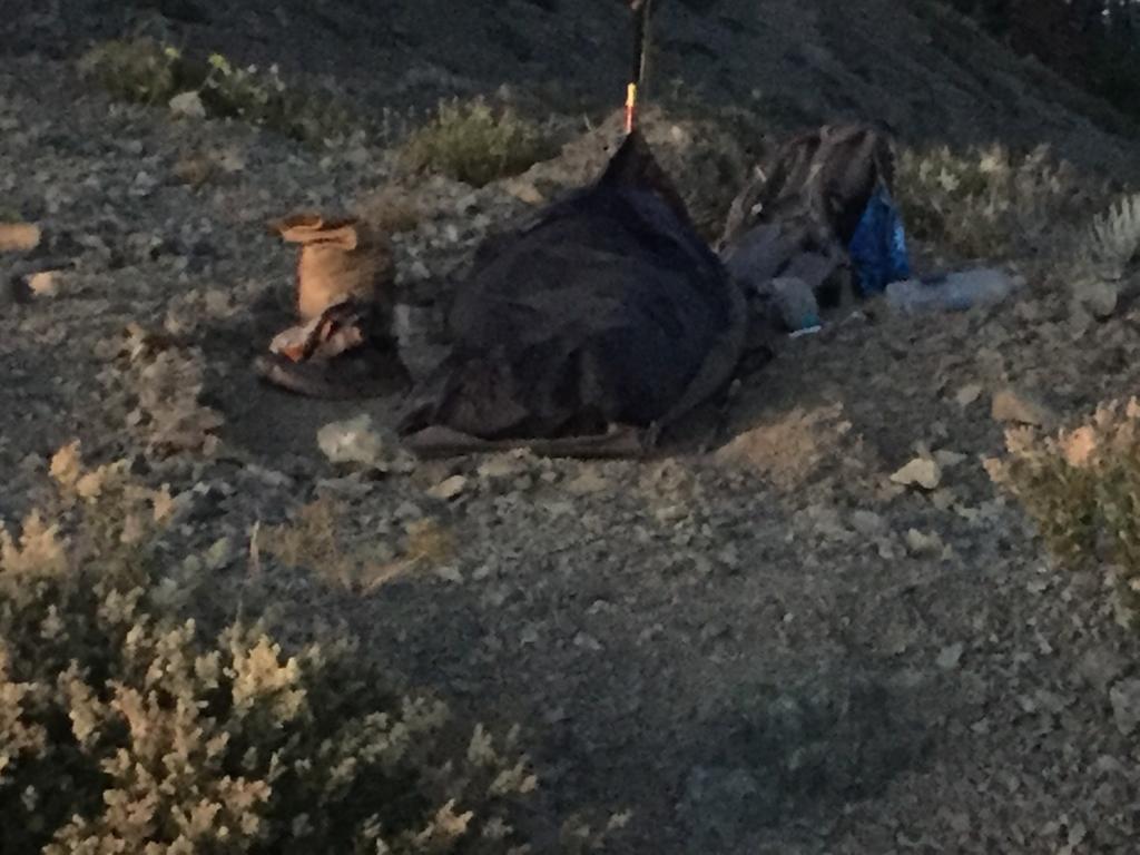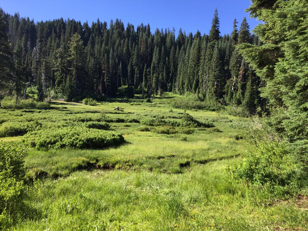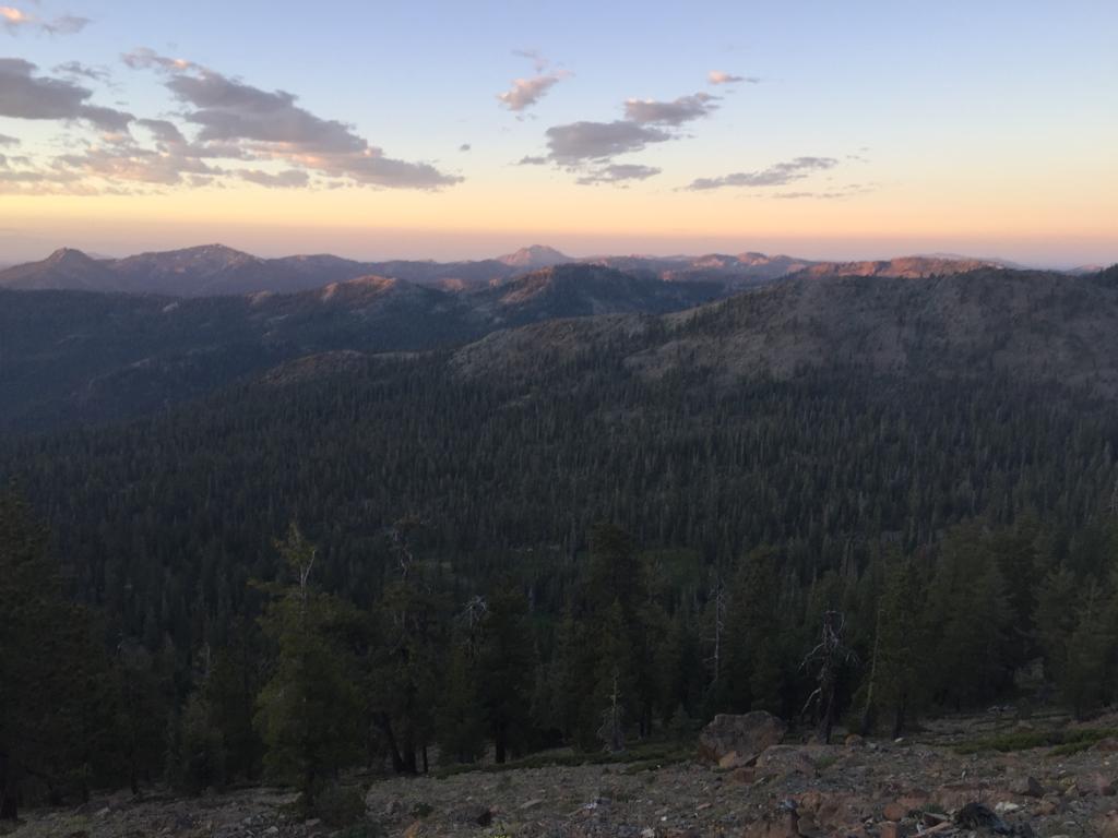 Am Nachmittag geht der Weg etwas über 2200 Höhenmeter hinauf, ist anstrengend. Von da oben sieht man den riesigen See Upper Klamath Lake, erstmals wieder eine tolle Weitsicht ohne Smog von den Waldbränden. Danach geht der Weg auf die andere Seite dem Hang entlang. Wir laufen noch hinunter zu einem Bach, stellen das Zelt und machen uns Kartoffelstock mit Curry-Reis und Käse, das schmeckt gar nicht schlecht.