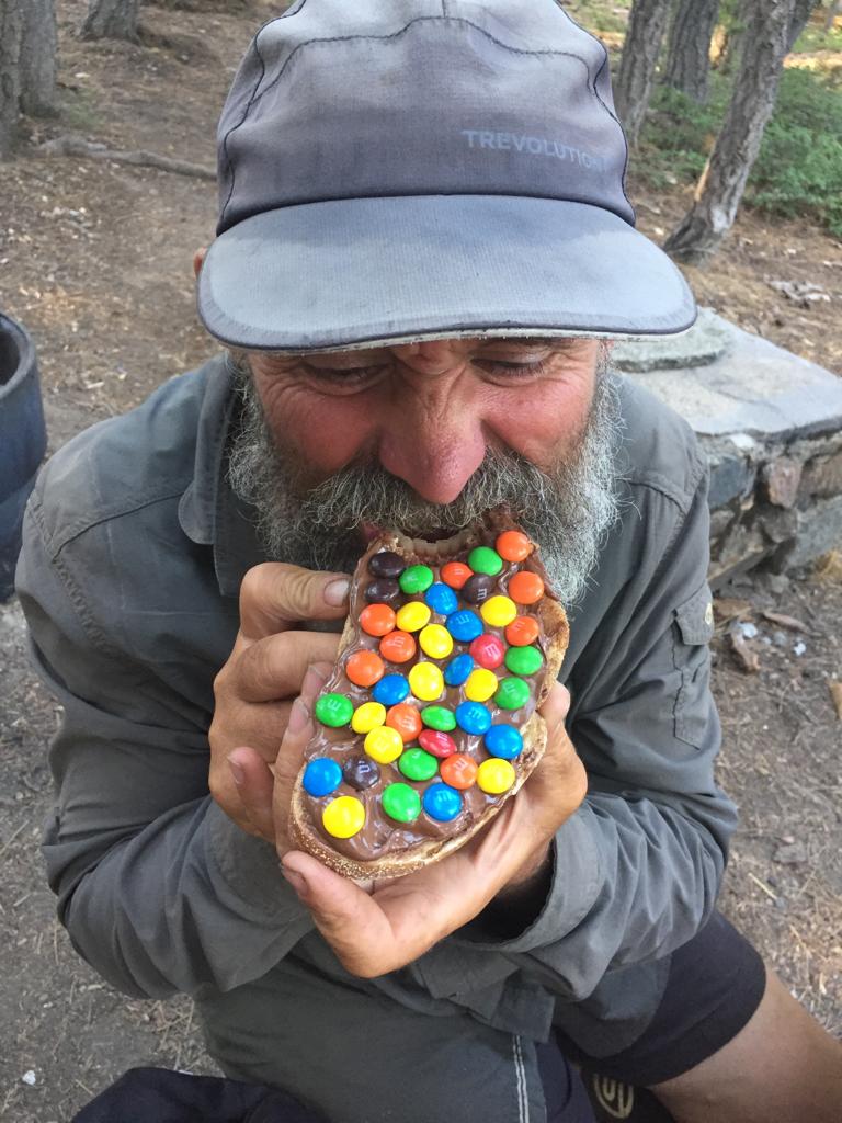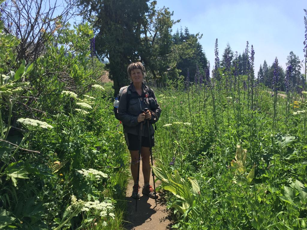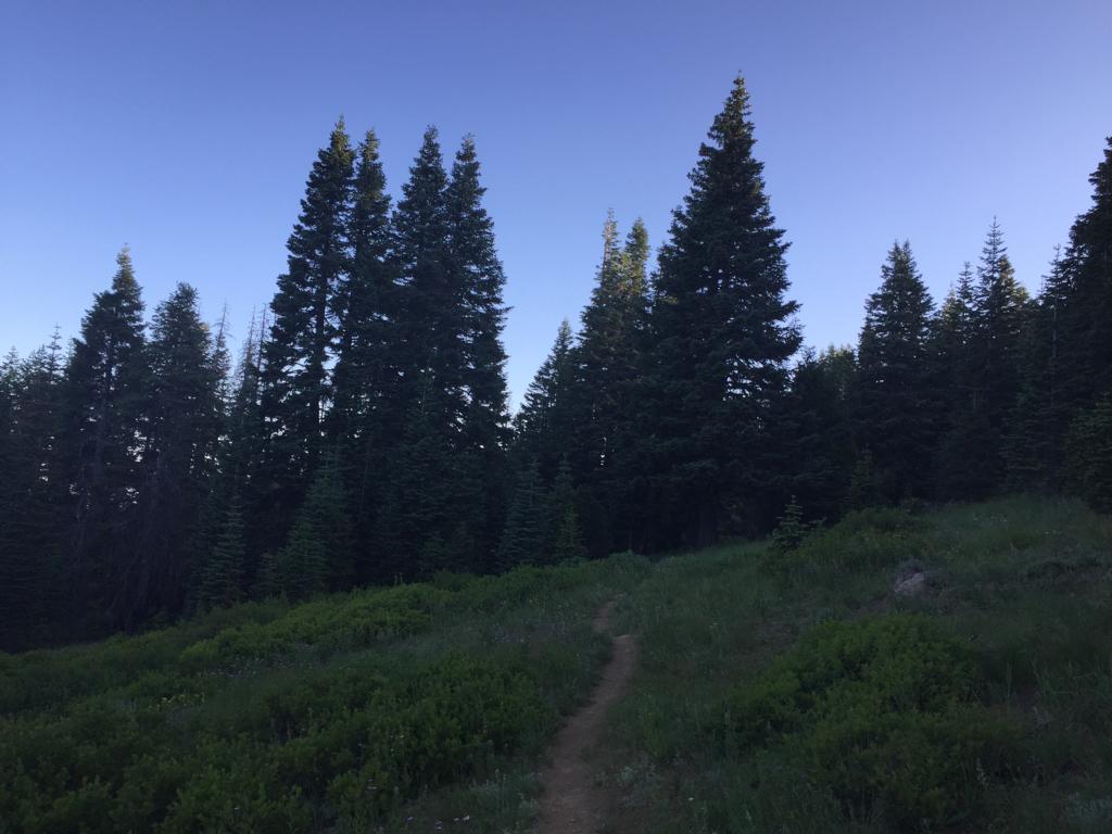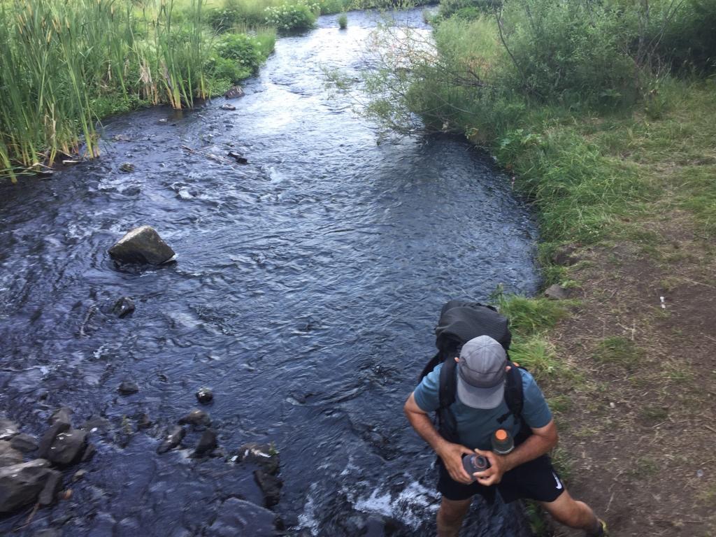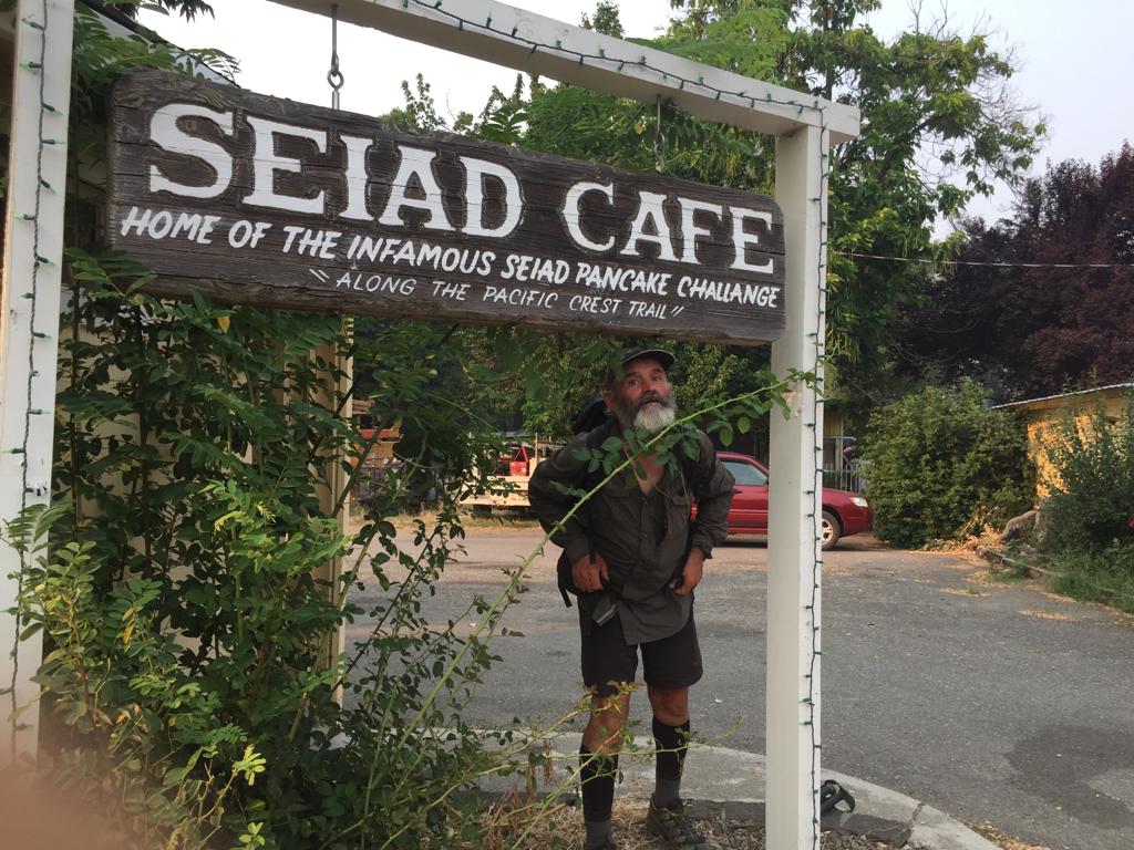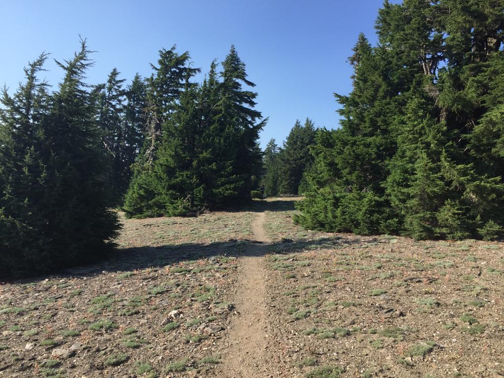 Abmarsch ist jetzt immer vor Sonnenaufgang, und Schluss je nach Wasser. Bei der ersten Pause, die wir machen, kommt Yves (der Schweizer aus Freiburg) singend den Hang hoch: «Trittst im Morgenrot daher…», weiter kommt er nicht, entweder er kennt den Text nicht oder hat keine Puste mehr, eins von beiden wird’s wohl sein. Das letzte Mal haben wir ihn vor der High Sierra gesehen, jetzt sieht er aus wie ein Hiker: längerer Bart und schlanker. Ein Hiker mit bester Laune, super, dafür bekommt er von unserem Knäckebrot, toll, ihn wieder zu sehen. Ist immer wieder schön, Leute zu sehen, die man von der Desert kennt. Yves hat sich mit seinem Netzteil gegen die Mücken gerüstet. Oregon gilt als der Teil vom Trail, in dem am meisten Strecke macht pro Tag, logisch, es bleibt dir gar nichts anderes übrig, wenn du stehen bleibst oder zu langsam läufst, bist du von Hunderten von Mücken umzingelt.