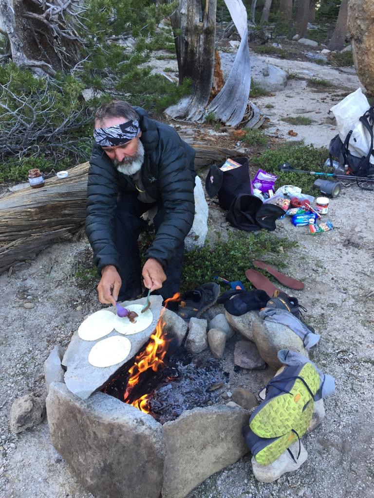 Dort nimmt uns ein Feuerwehrmann im Auto mit, er ist völlig fasziniert vom PCT, will diesen selber einmal wandern, wenn seine Kinder so alt seien wie ich etwa. Oh, jetzt hat er aber was falsch eingeschätzt, Andy sieht mit Bart halt älter aus als ich, da bin ich manchmal froh, dass Andy nicht alles versteht, er ist in solchen Sachen schnell beleidigt. Er fährt uns zu einem Mexican Restaurant, dort werden wir sehr nett bedient. Der Kellner ist auch ziemlich angetan vom PCT, wir sind am essen und er löchert uns mit Fragen zum Hiken, immer mit genügend Abstand, das ist kein Wunder, denn zum Geruch von Schweiss und Sonnencreme mischt sich neu noch der vom Insektenspray. Sehr unangenehm, aber es geht nicht ohne, die Viecher sind extrem aggressiv.
