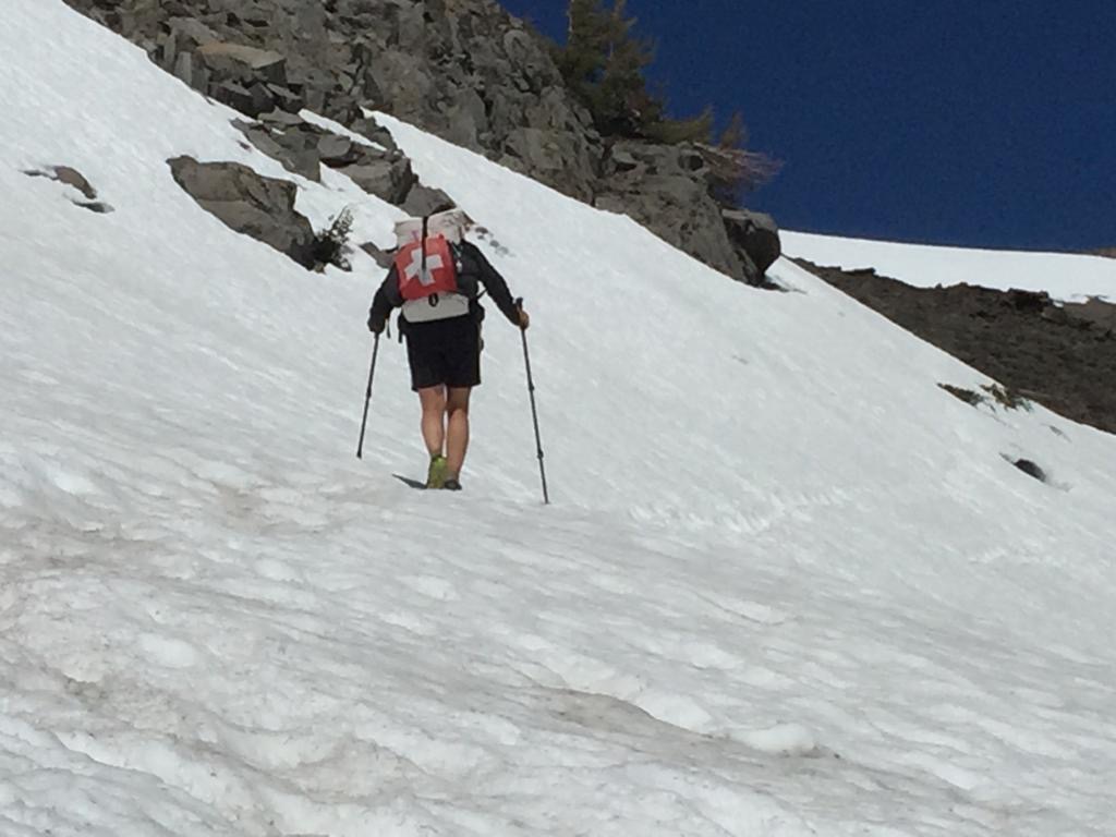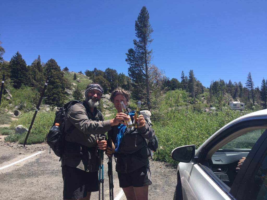 Hier ist uns zu viel los, drum wollen wir zurück auf den PCT, stellen uns wieder an der Strasse. Da nimmt uns ein anderer Mann mit bis Echo Lake, auch er will in einem Jahr den PCT machen, schon extrem wie bekannt der PCT ist. Als wir beim Resort sitzen kommt ein älteres Ehepaar und fragt uns, ob wir bei ihnen übernachten und duschen möchten, sie haben gleich neben dem Weg ein Häuschen am See. Super, nehmen wir dankend an. Die Dusche ist schön warm, es gibt auch ein Glas Wein und gute Gespräche, wir sind rundum zufrieden.