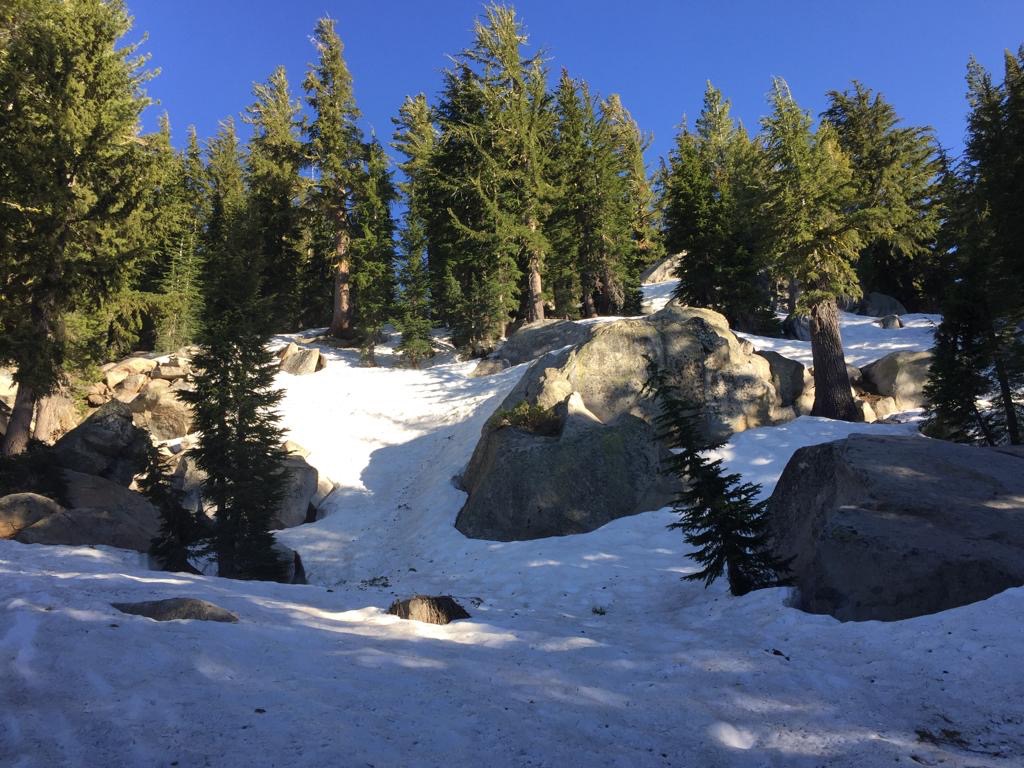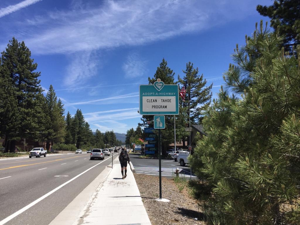 Also geht es noch zum Esswaren einkaufen, aber heute haben wir uns nicht mehr gespürt beim Einkauf, viel zu viel und zu schwer, Bananen, Avocado, Kirschen, Käse, Salami, 1 kg Smarties, zwei Pack Tortillas ect. An der Kasse spricht uns ein junger Zimmermann an, er hat den PCT im 2015 gelaufen und fragt uns, ob wir eine Fahrt brauchen. Dann fährt er uns durchs ganze Dorf – eher schon eine Stadt – am Tahoe See, sehr netter Typ. Er und Andy haben es richtig lustig, zuerst fährt er in die falsche Richtung, also alles wieder zurück, er lacht und sagt, er habe nur etwas Zeit mit uns verbringen wollen.