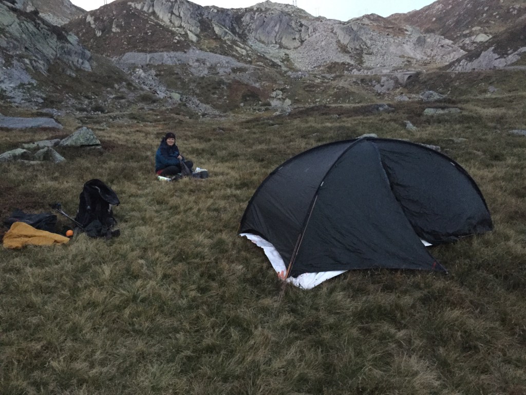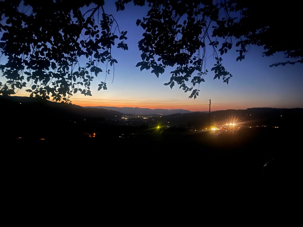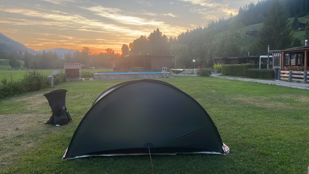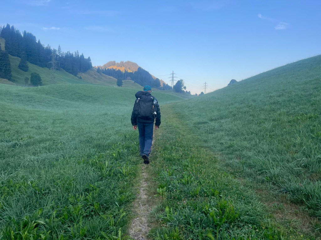 Danach liefen wir durch kleinere Siedlungen meistens Bauernhöfe bis wir auf einen Hügel unser Zelt stellten. Es war schon dunkel so stellten wir das Zelt an den Waldrand. Sehr schöne Aussicht hatten wir aufs Schaffhausen i.E.