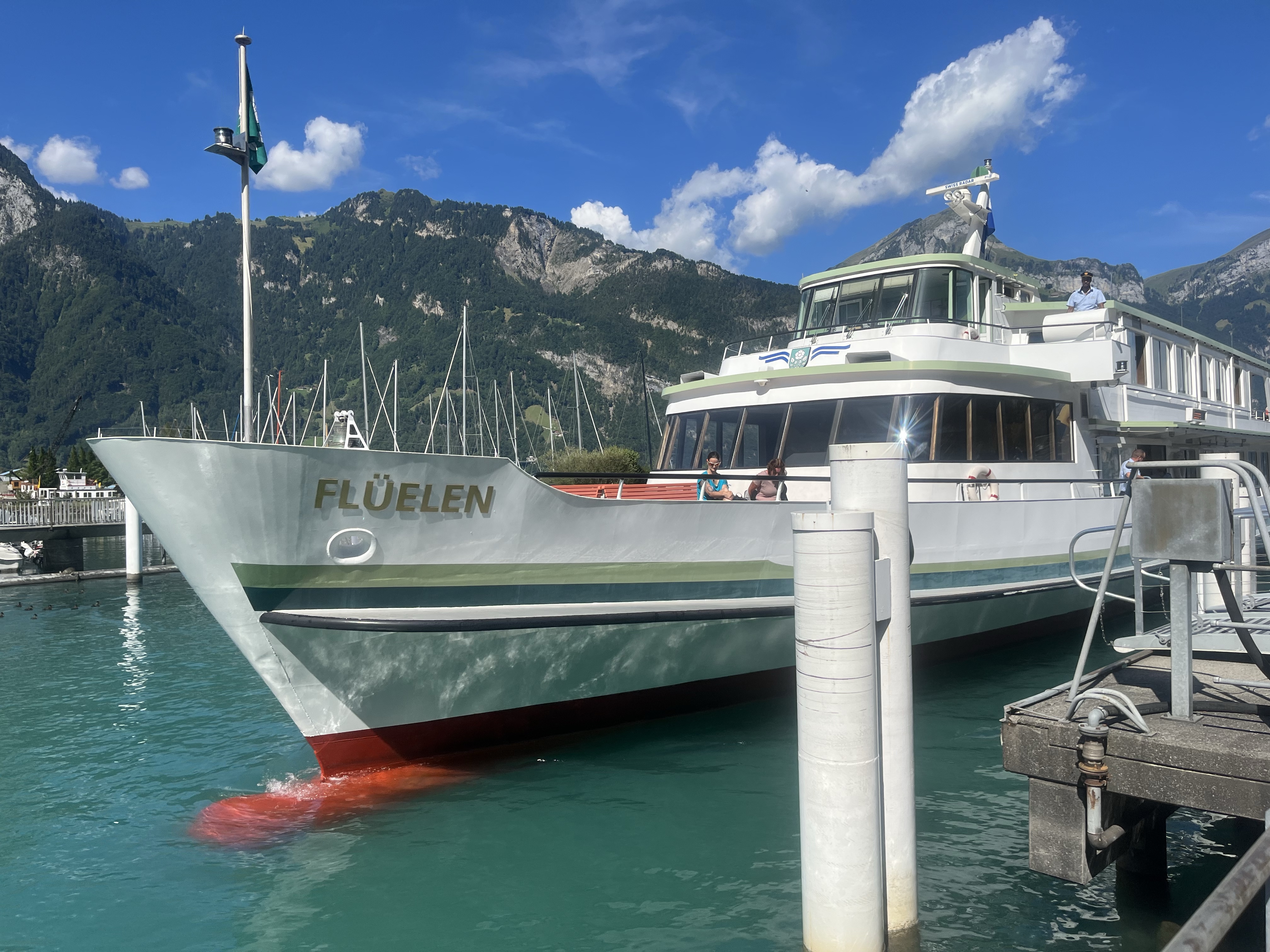 Mit dem Zug fuhren wir nach Flüelen an dem Vierwaldstättersee und mit dem Schiff über den See nach Isleten.