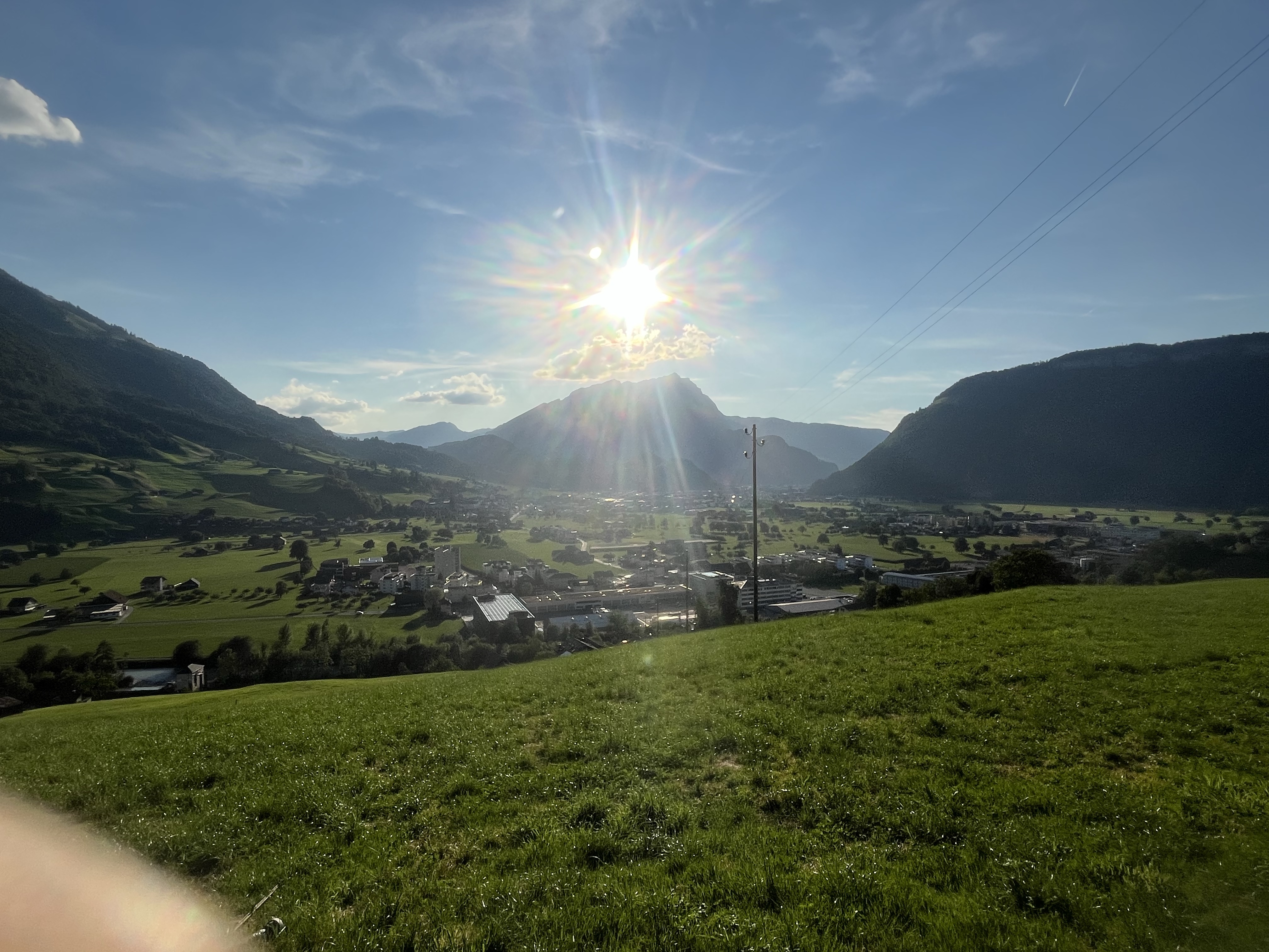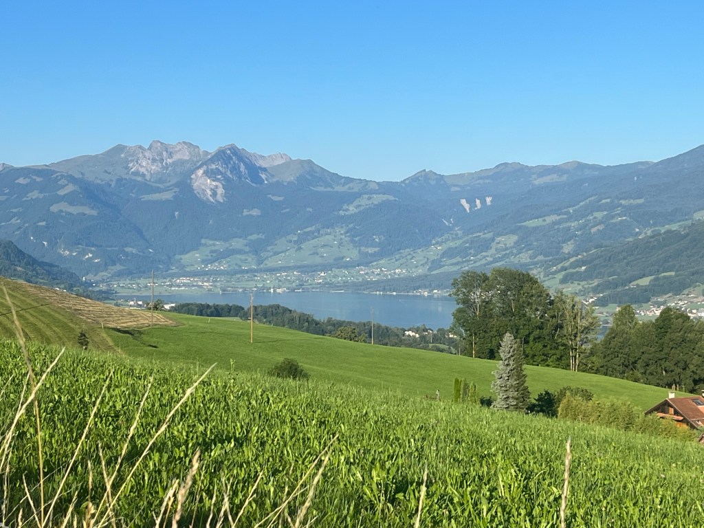 Auf dieser Anhöhe hat man die Aussicht wie das Bild im Bundeshaus von den Myhten