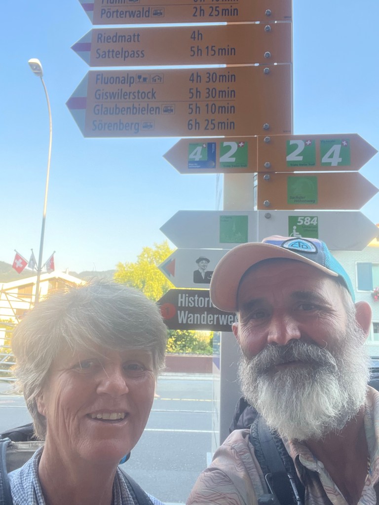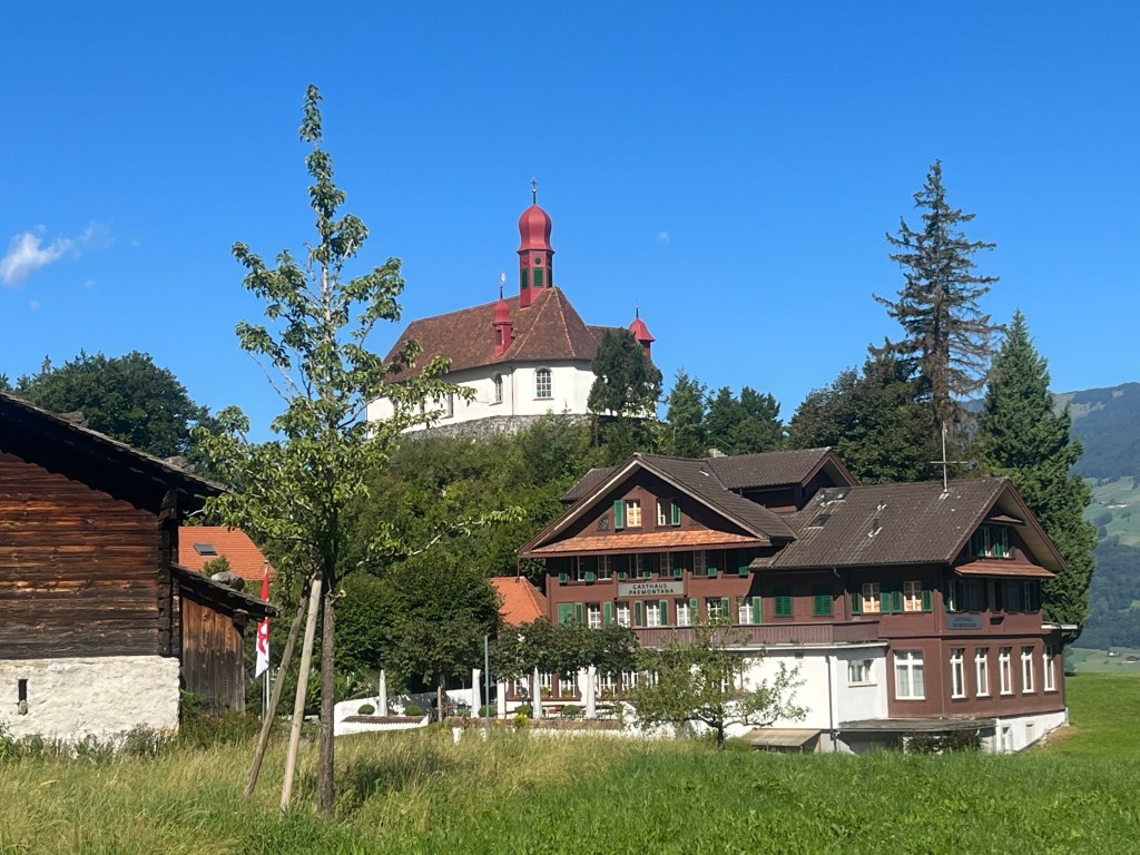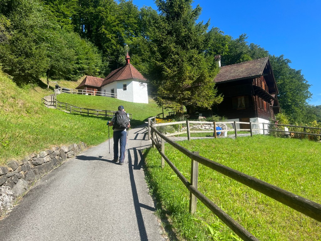 Bei einem Bauernhof wollten wir etwas kaufen. Die Leute grüssten nicht mal. Selbst die Kinder brachten kein hallo oder Grüzi raus. Die Preise unglaublich hoch, fast schon wucher. Zum Beispiel für eineinhalb Liter Rivella 10 Franken ohne Sitzgelegenheit oder Schatten. Wir gingen weiter ohne etwas zu konsumieren. Alles muss man ja nicht gut finden. Im nächsten Dörfchen Eggiswil gingen wir in die Bäckerei, tranken und assen eine Kleinigkeit.