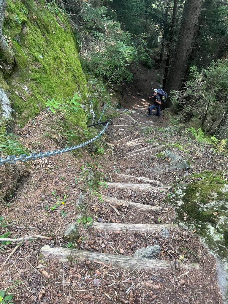 Unten finden wir dann keine Beschilderung mehr. Das heisst wir sind falsch und müssen irgendwie wieder hoch oder einen anderen Weg nehmen.