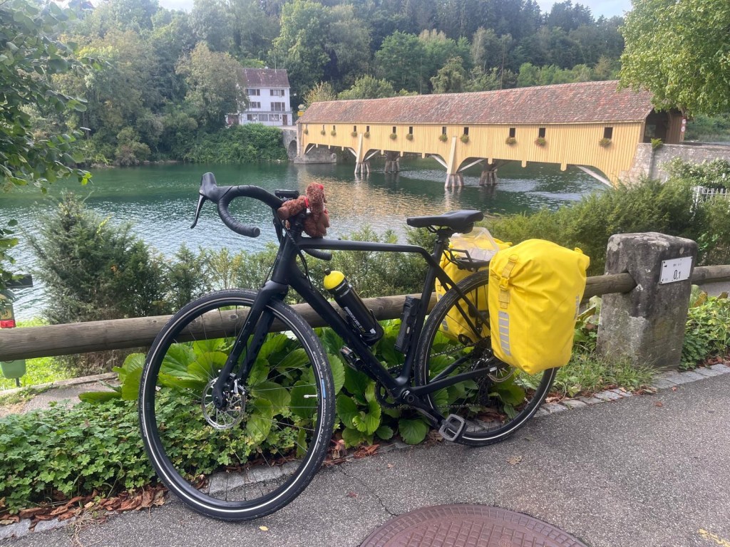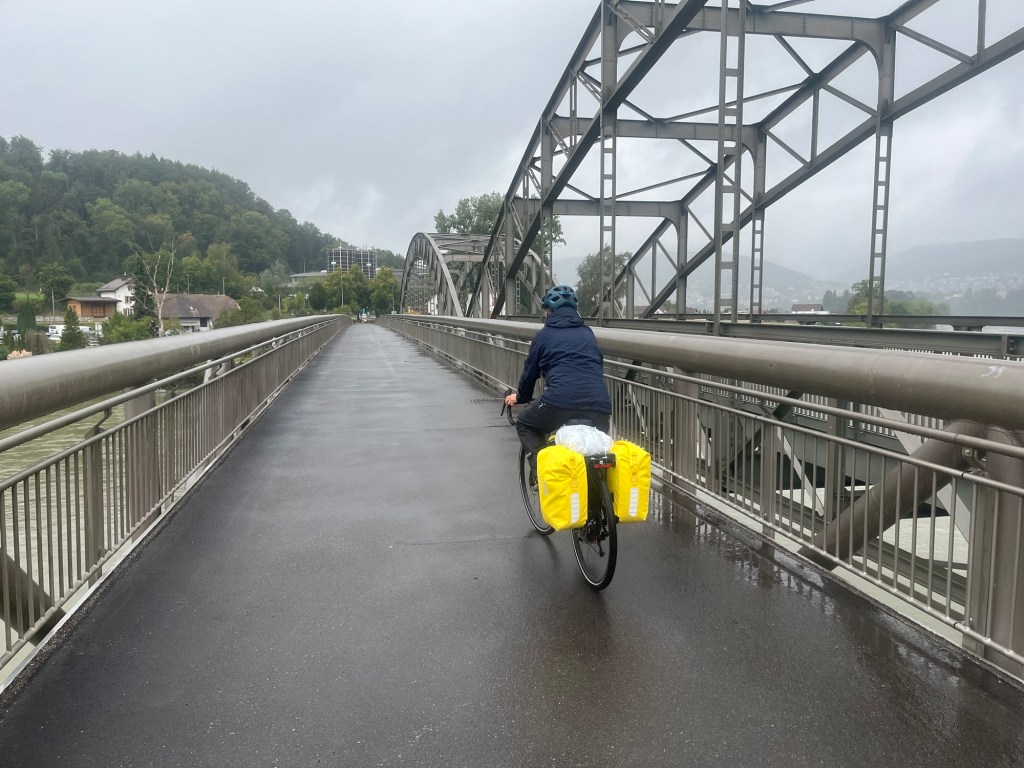 Weiter radeln wir auf dem Veloweg 7. Bei einer Verzweigung sind wir unsicher, aber der Wegweiser zeigt eindeutig nach unten, für uns etwas unlogisch.