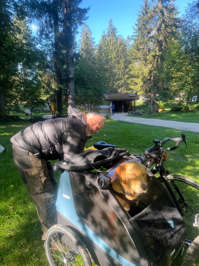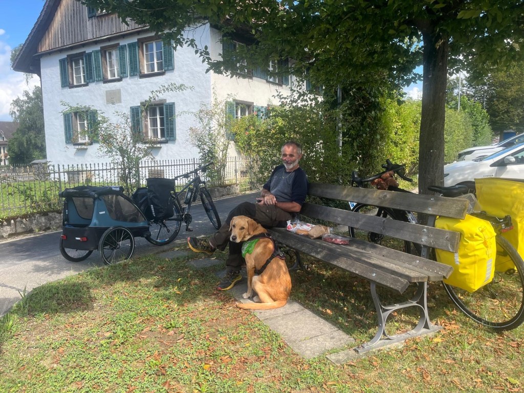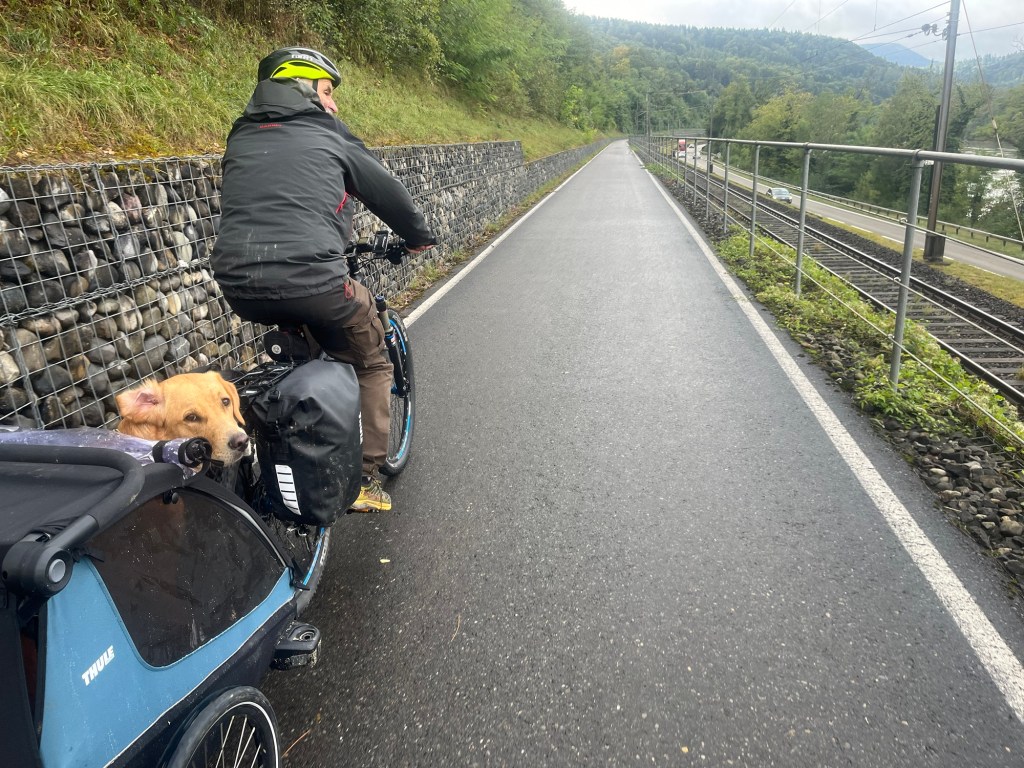 Wir schieben das Velo danach hoch 🥵 zu einem Zeltplatz. Wir werden Morgen dann den Rest machen bis zum Veloweg zurück.