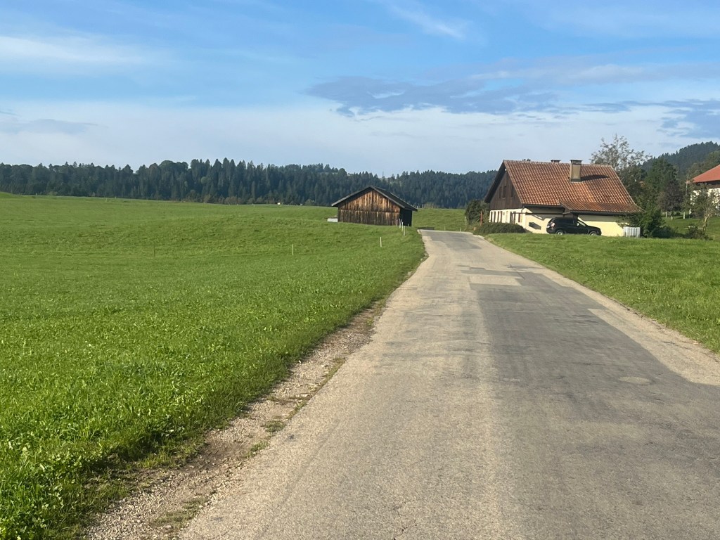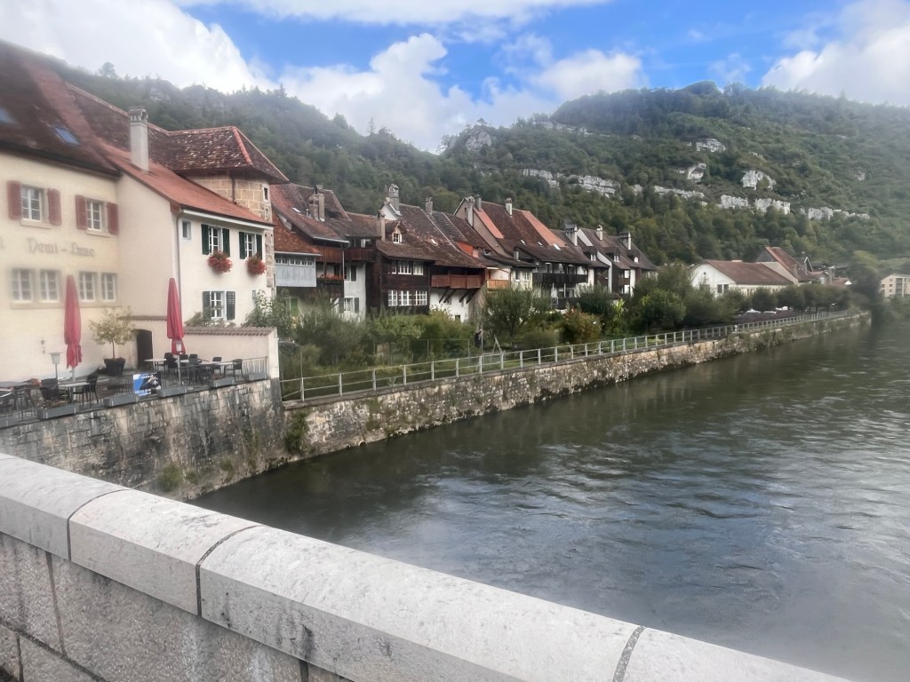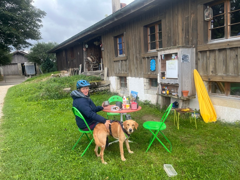 Vom Mont Solei geht’s langsam abfallend Richtung La Chaux-de-Fonds. Der Veloweg 7 geht seitlich daran vorbei. Wir haben langsam Hunger. Es ist jetzt schon 2 Uhr, aber in die Stadt fahren haben wir keine Lust.