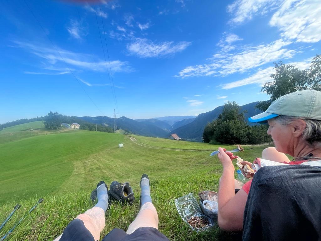 Ein älteres Pärchen betreibt den Imbiss, die Frau kocht und der Mann serviert. Es ist wirklich toll egal was die Slowenen machen sie machen es sehr gut, ob kochen oder bauen, gärtnern. So genaue und saubere Handwerkerarbeit.